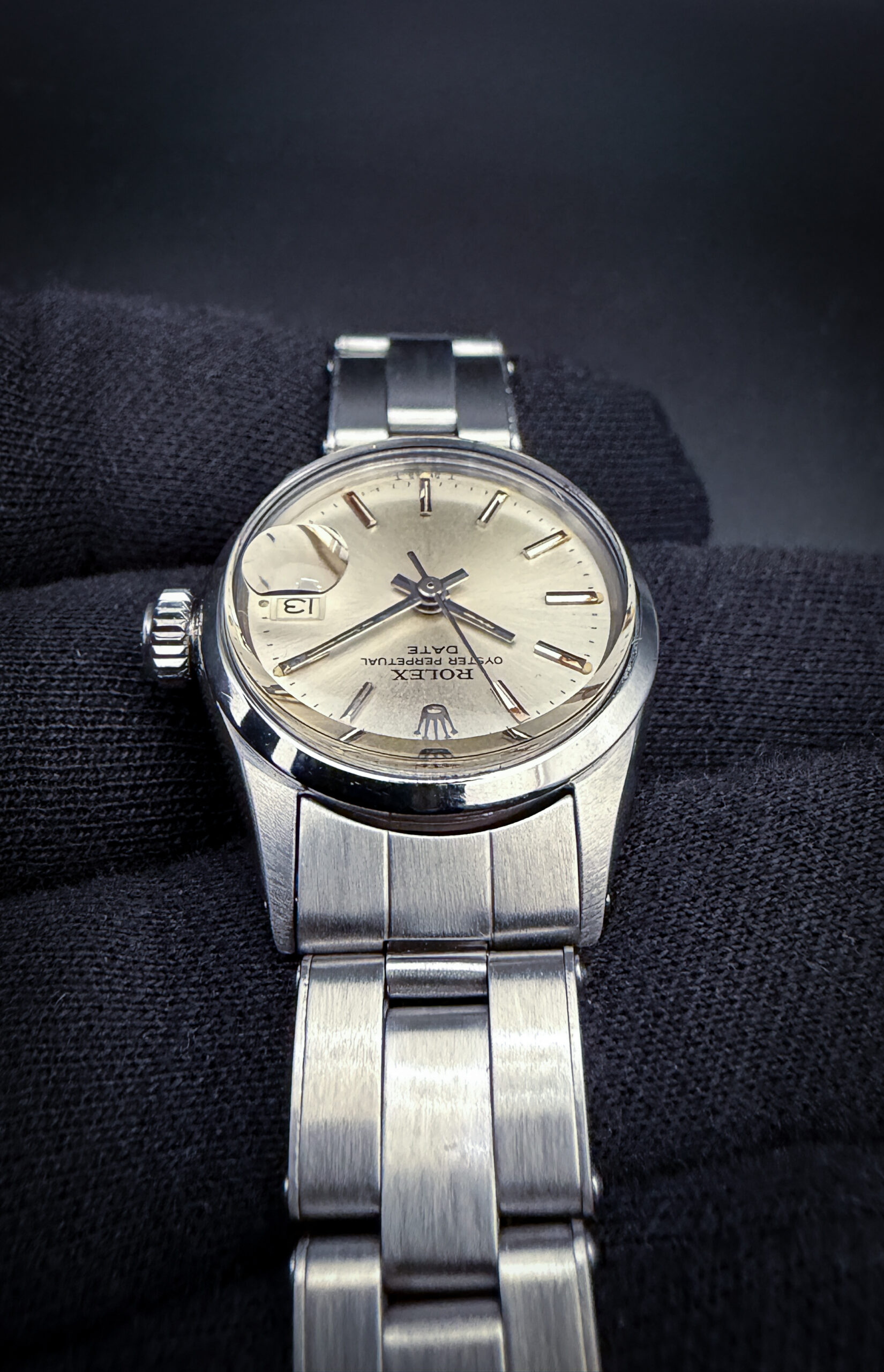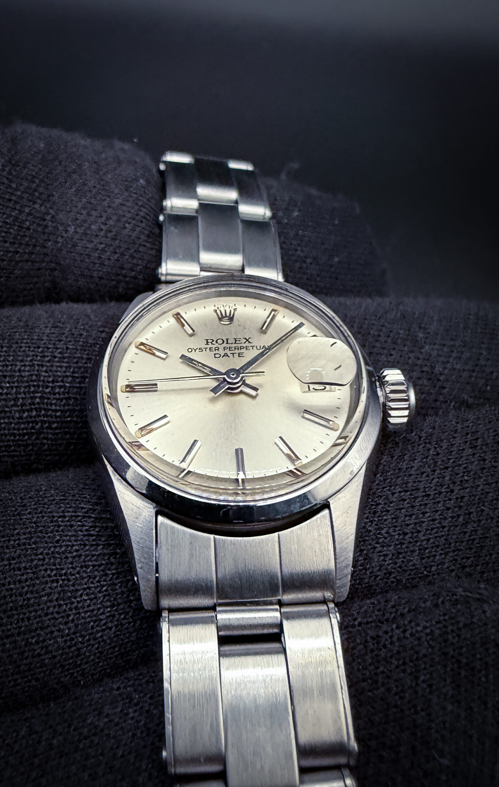 Offered here is the vintage Rolex Oyster Perpetual Date reference 6516, a classic mid-century ladies model dating to 1957 and showcasing the timeless design language of early Rolex automatic watches. This “Date” configuration features the signature date display, adding practical functionality to its refined and compact design—an excellent option for collectors seeking an elegant and wearable vintage Rolex.