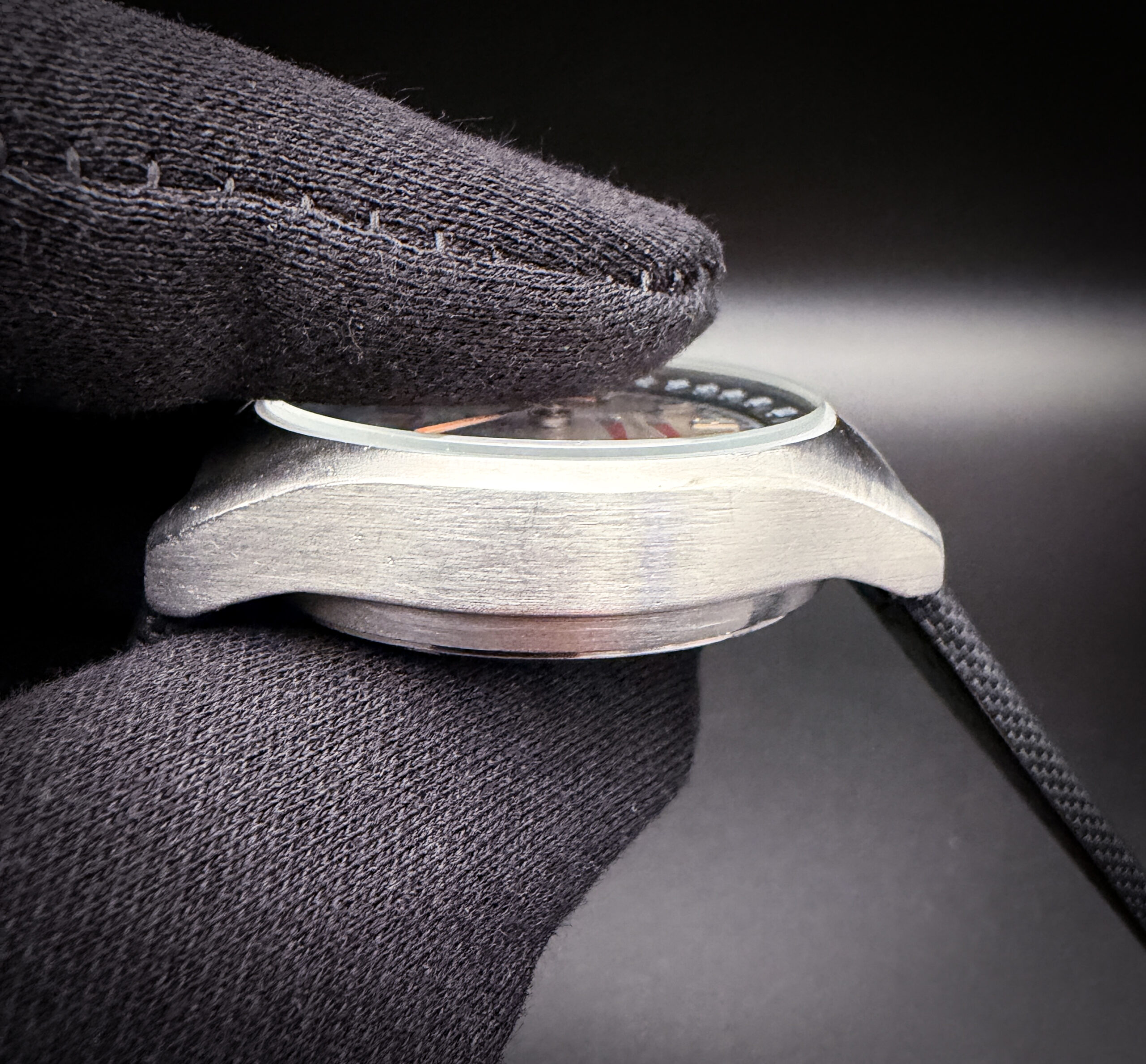 The crystal is clear and free of scratches or edge-chips. The original fume dial and orange hands are beautiful with no stains or discoloration. The roulette (Red/Black) date-wheel is also clean, with bright colors. Overall the case is in good condition with directionally brushed lines and light spider-lines consistent with age. The caseback is hallmarked, serial numbered, and reference numbered correctly, also with marks consistent with age.