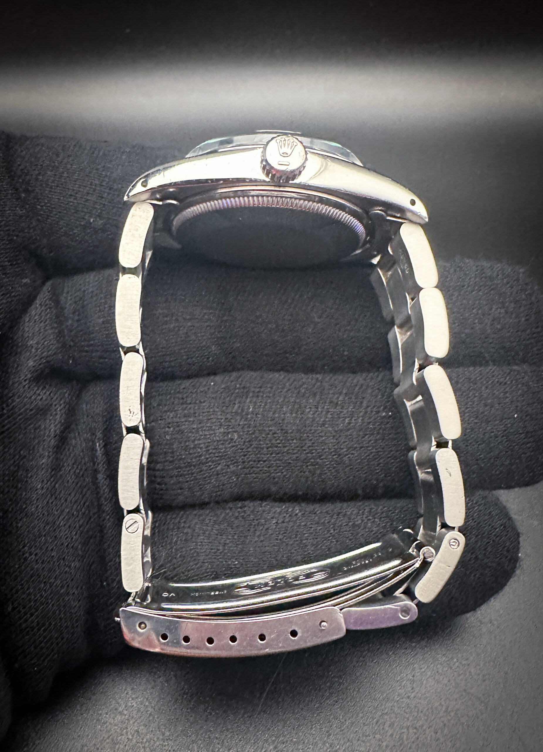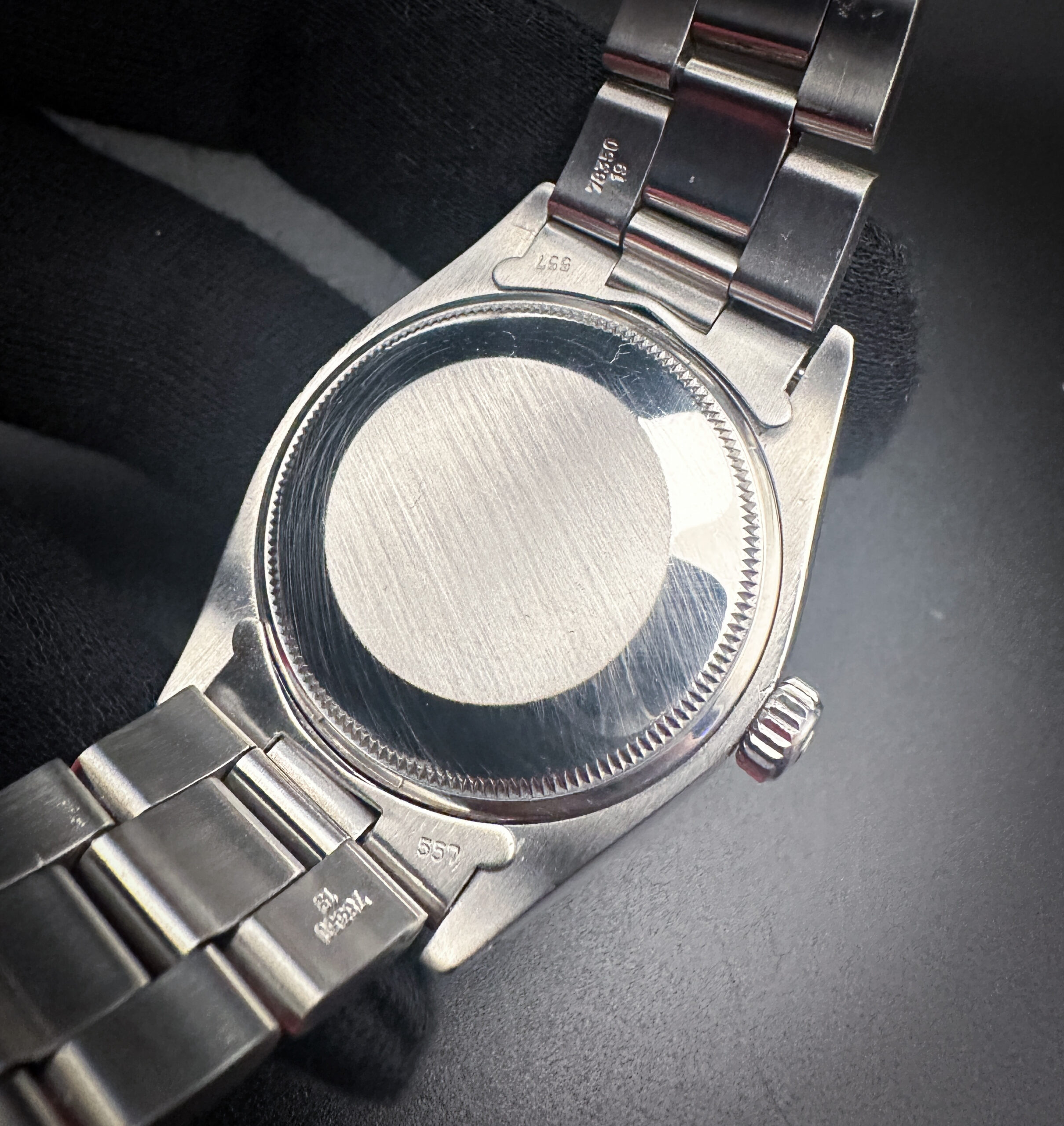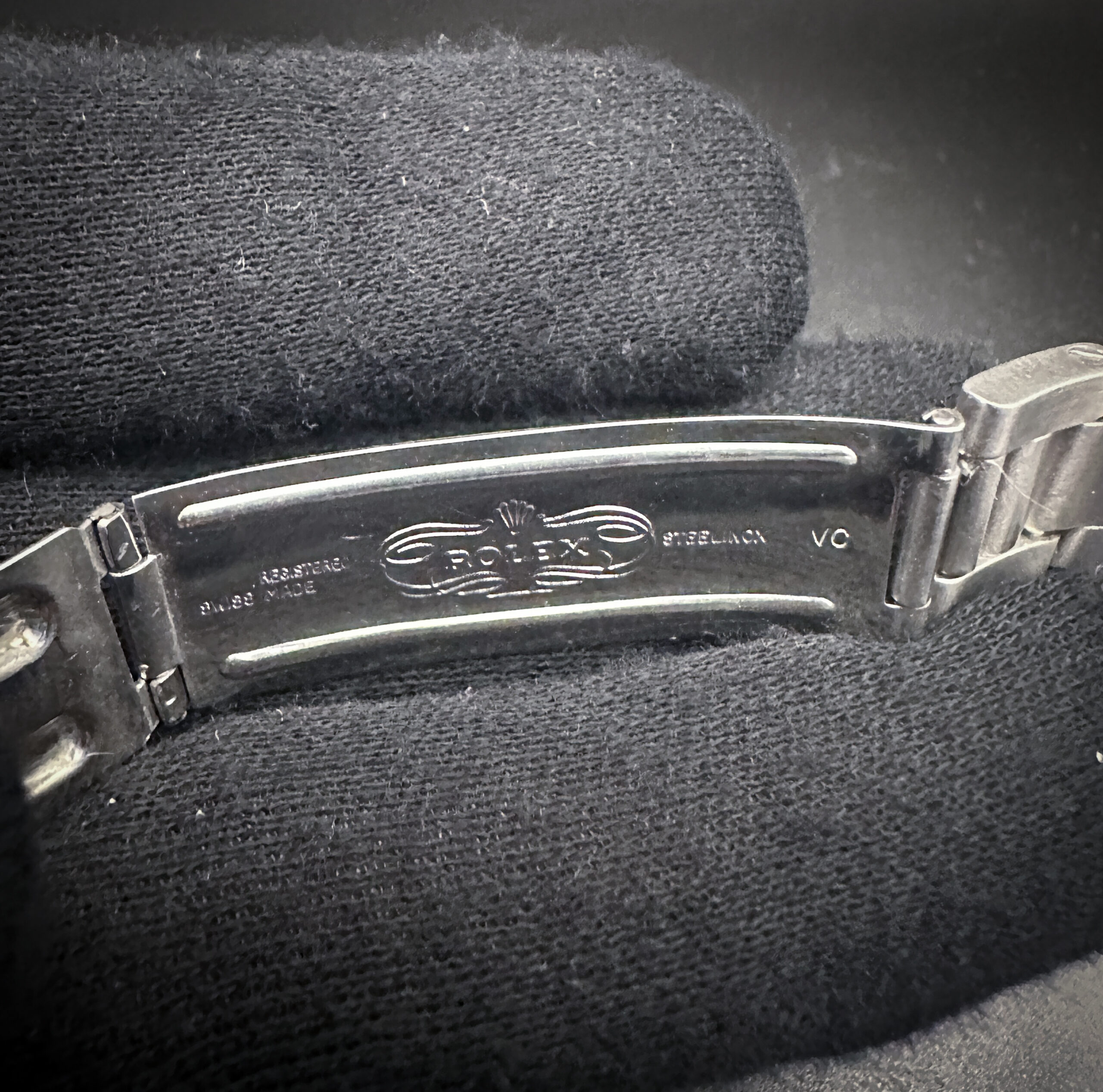 This Rolex is paired with the original Rolex Steelinox 78350-18 (VC) bracelet with 557 end-caps. The bracelet has one (1) removable link currently installed and will fit up to a 7 inch wrist.