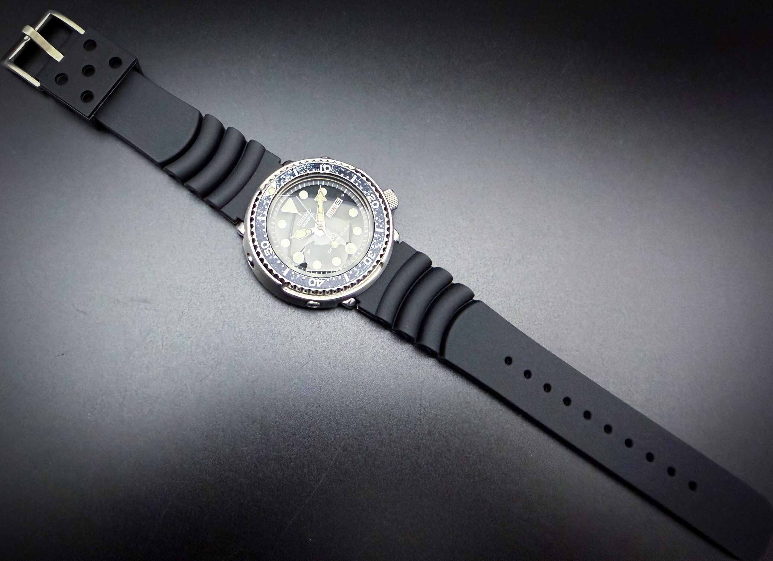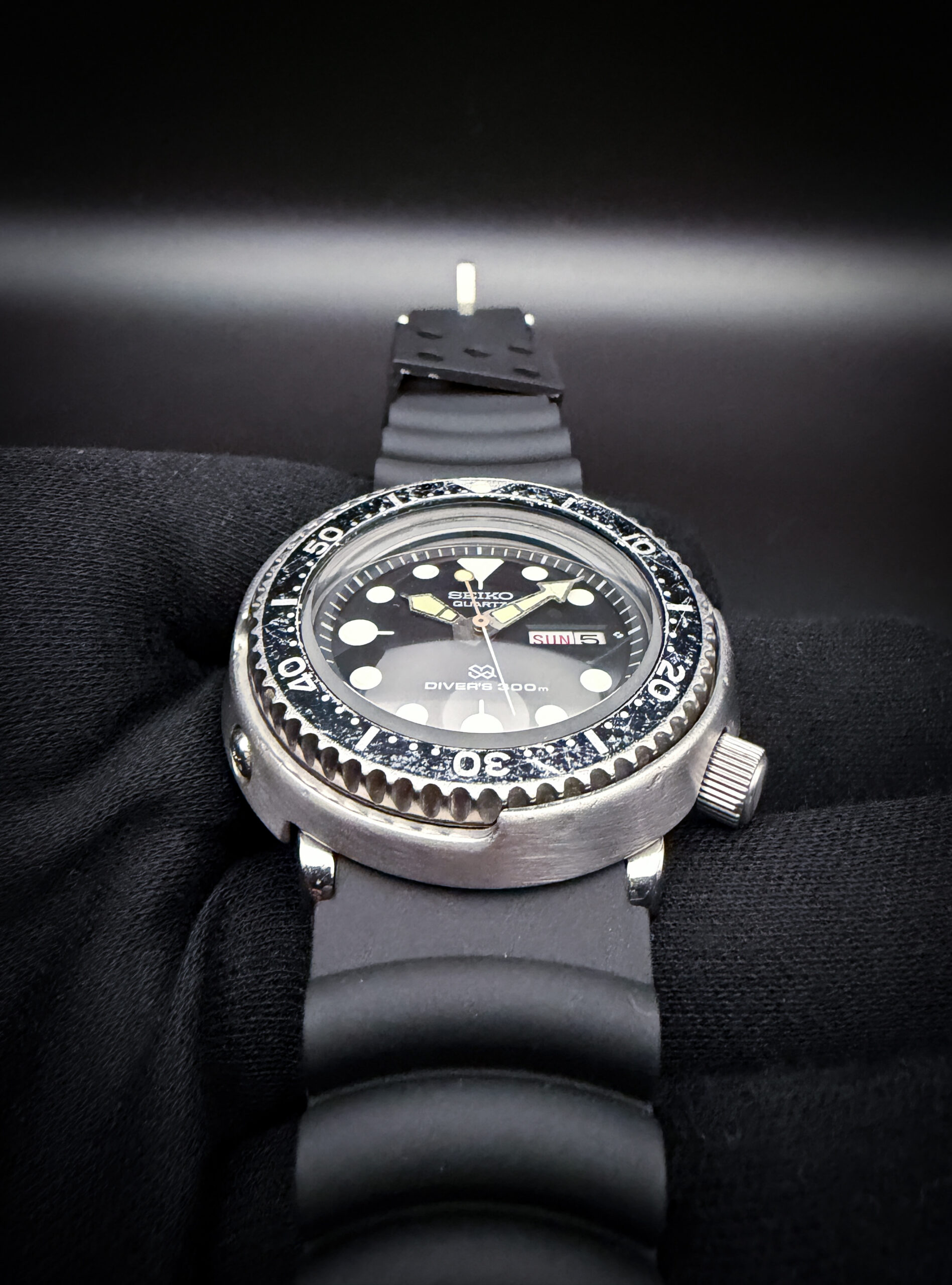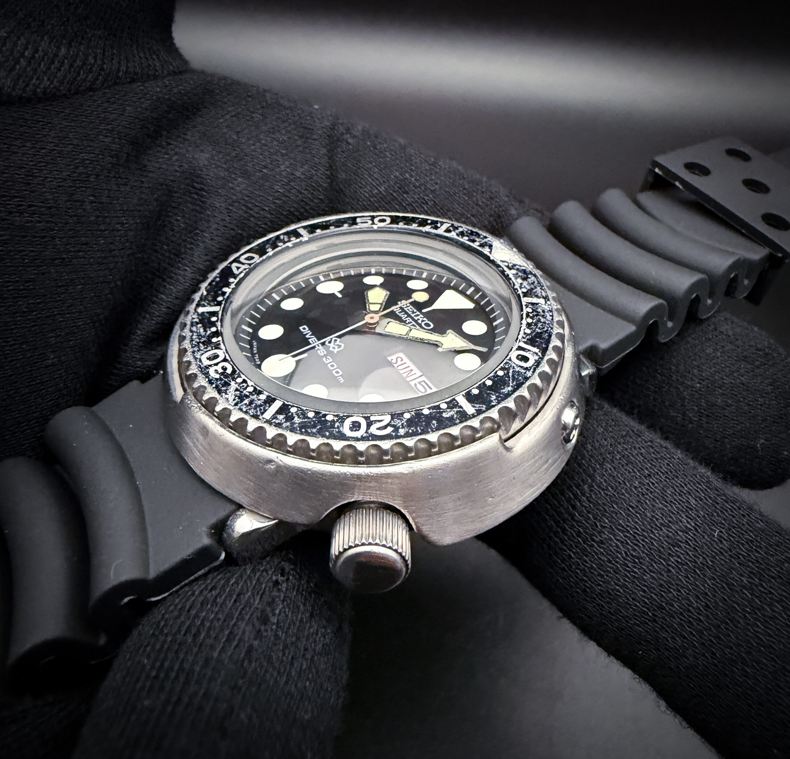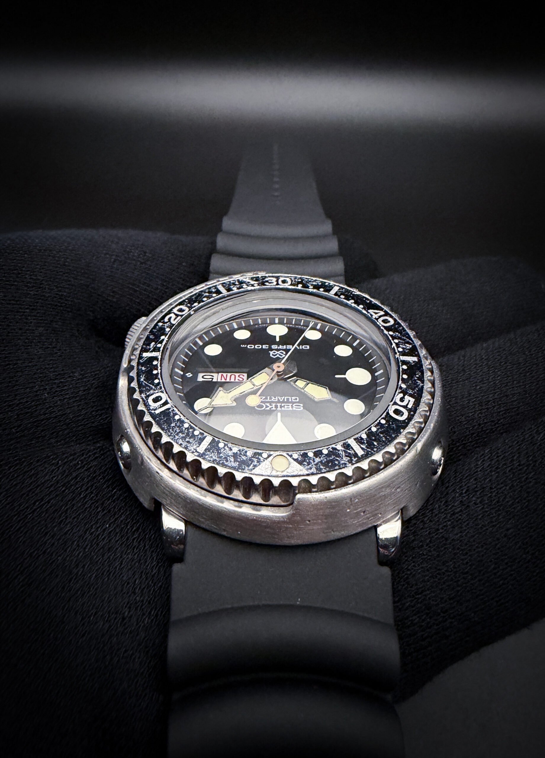 Offered here is a classic early example of the Seiko “Tuna” Professional 300m diver, reference 7549-7010, dating to April 1981. This model represents one of Seiko’s most iconic tool watches, designed for professional use with its monocoque case construction and protective outer shroud.