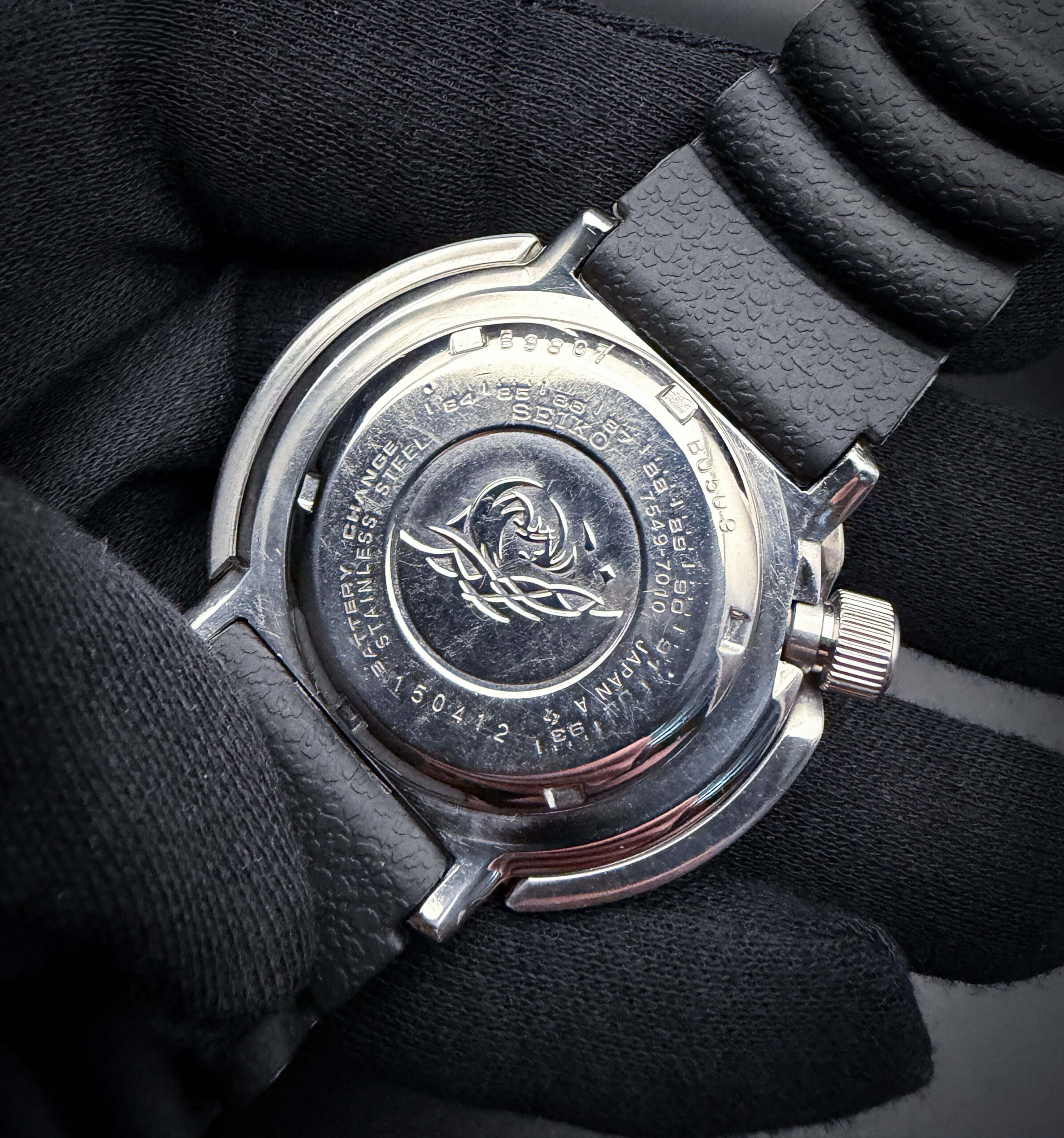Engravings, including the tsunami logo and reference details, remain clearly visible. Surface wear present but appropriate for age. - Strap: