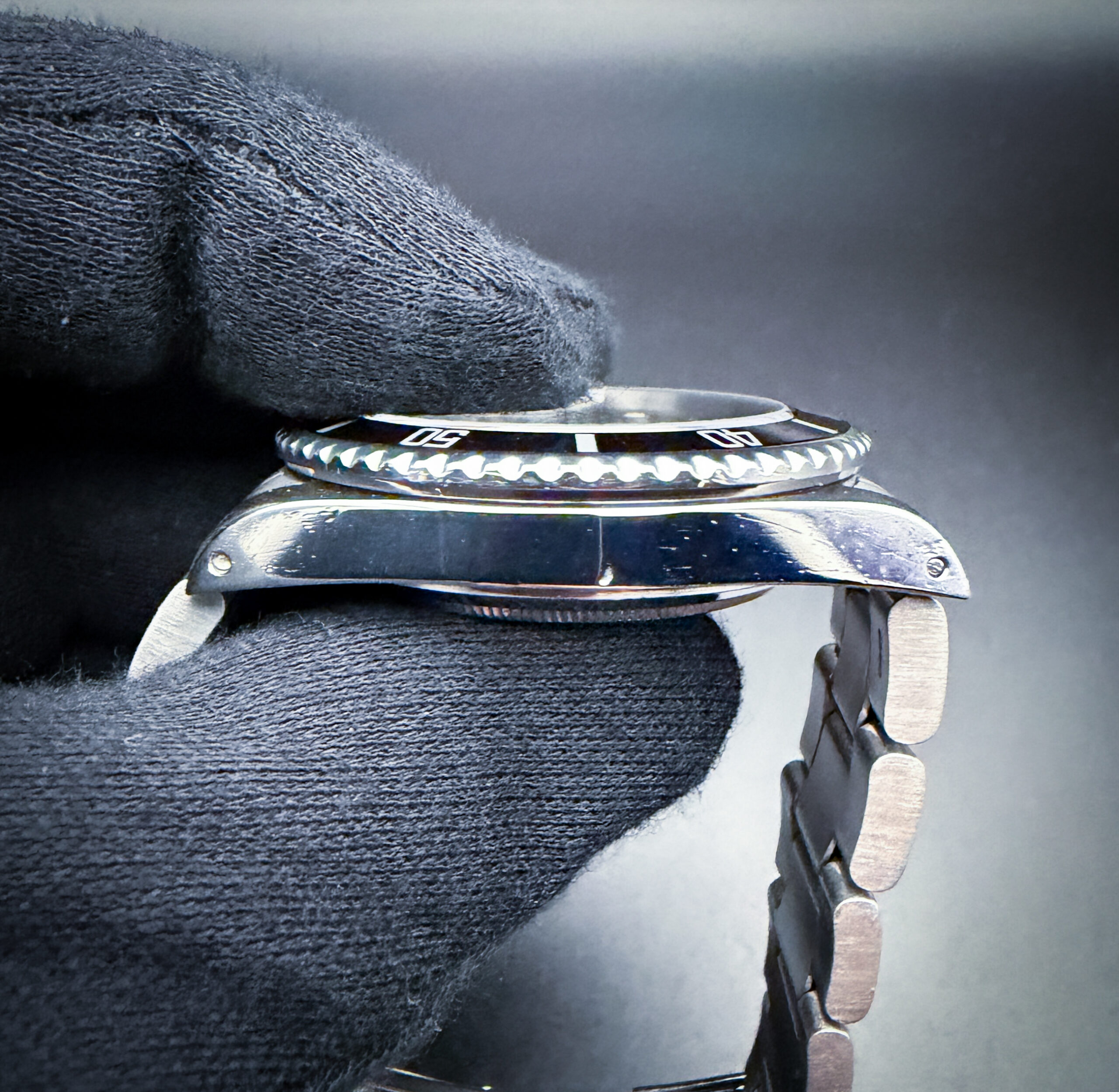 The original dial and hands are stunning with a tropical patina giving the dial a dark-grey/brown matte finish. The original bezel insert has also started to lightly faded to that preferred grey/blue color, with a nice patina to the pip. The sapphire crystal is clear and free of scratches or edge-chips. Overall the case is in good condition with marks and lines consistent with age (please review photos).