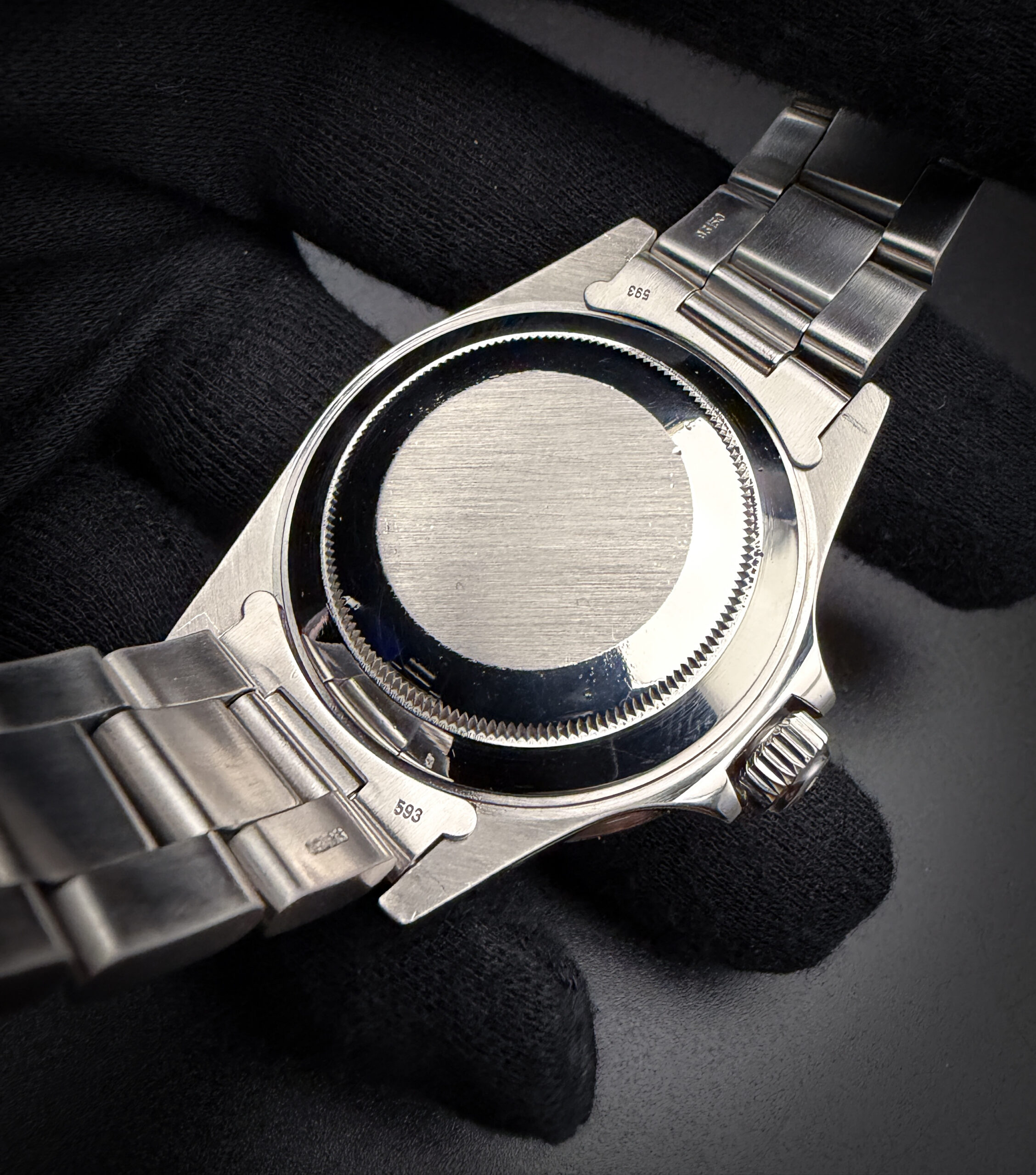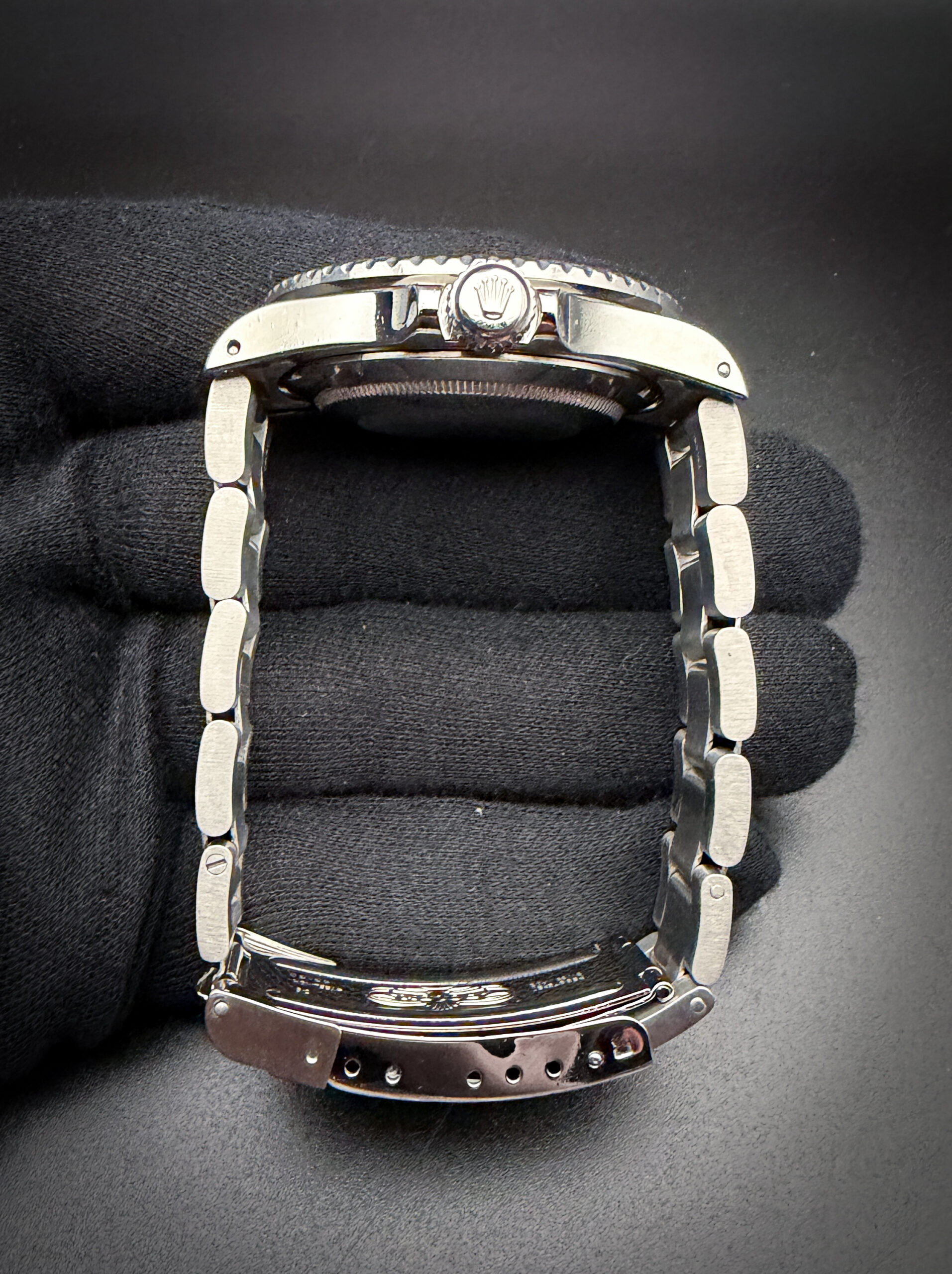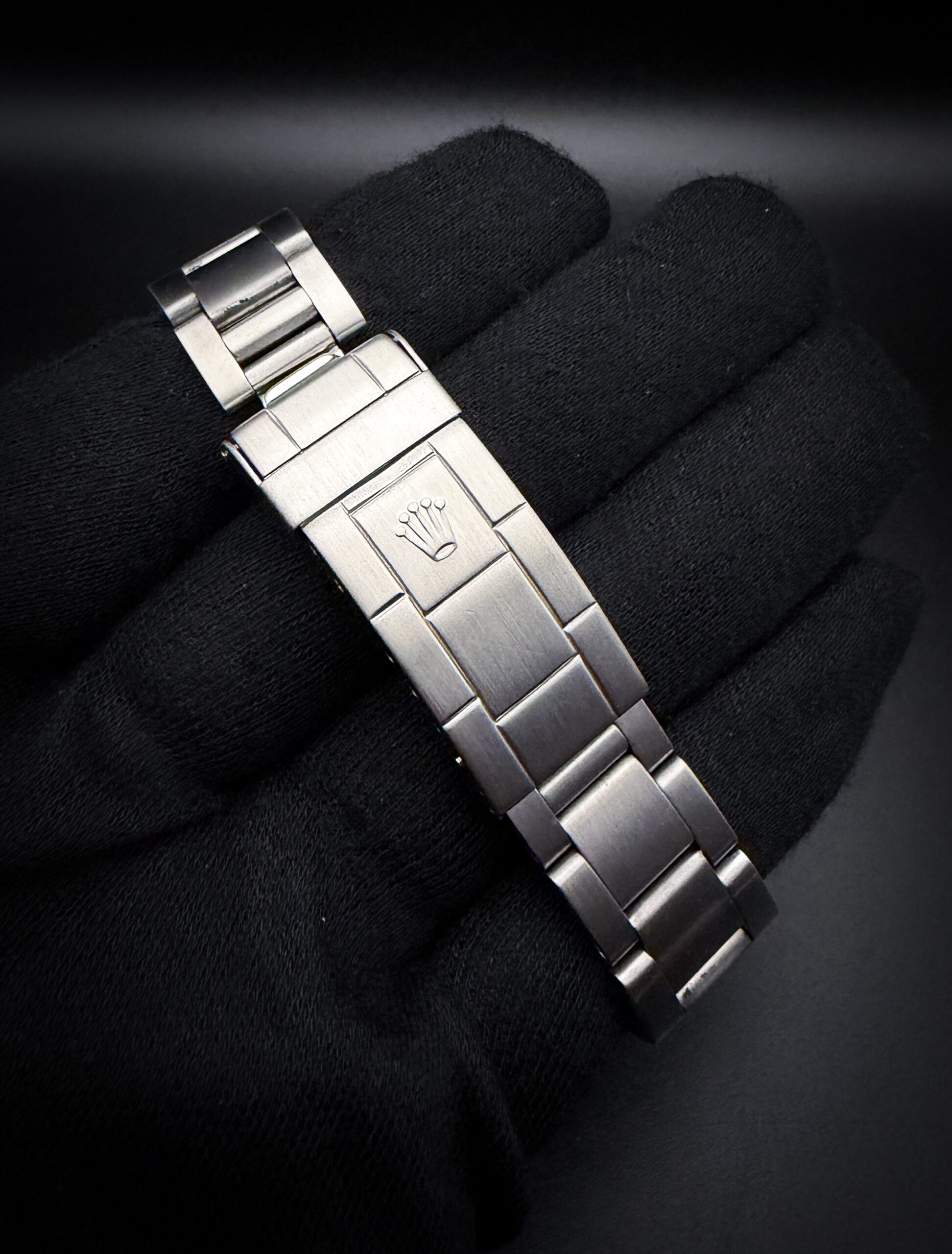 This Submariner s paired with the original Rolex 93150 bracelet with 593 end-links. The bracelet has one removable link installed and will currently fit a 7.75 inch wrist.