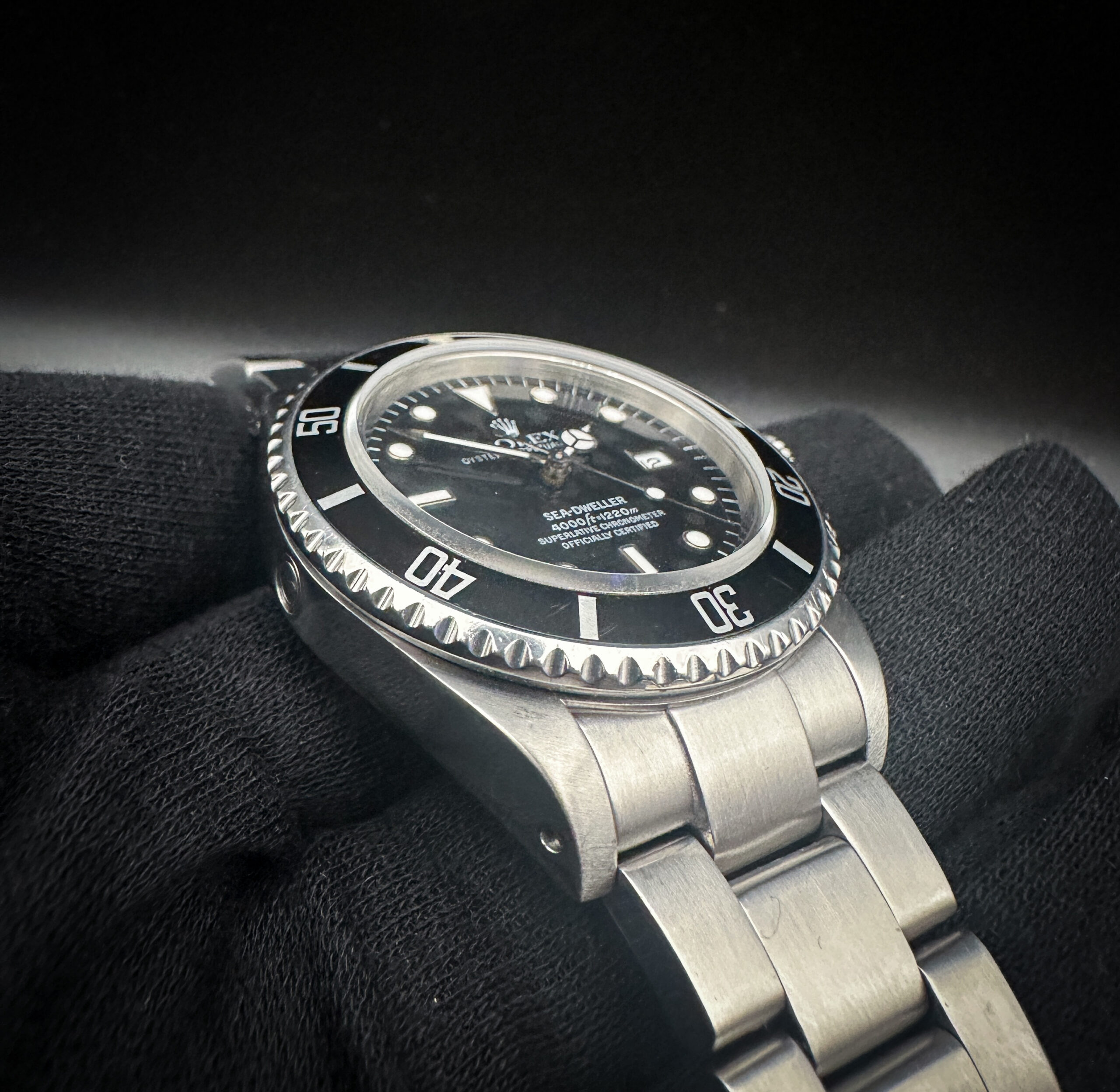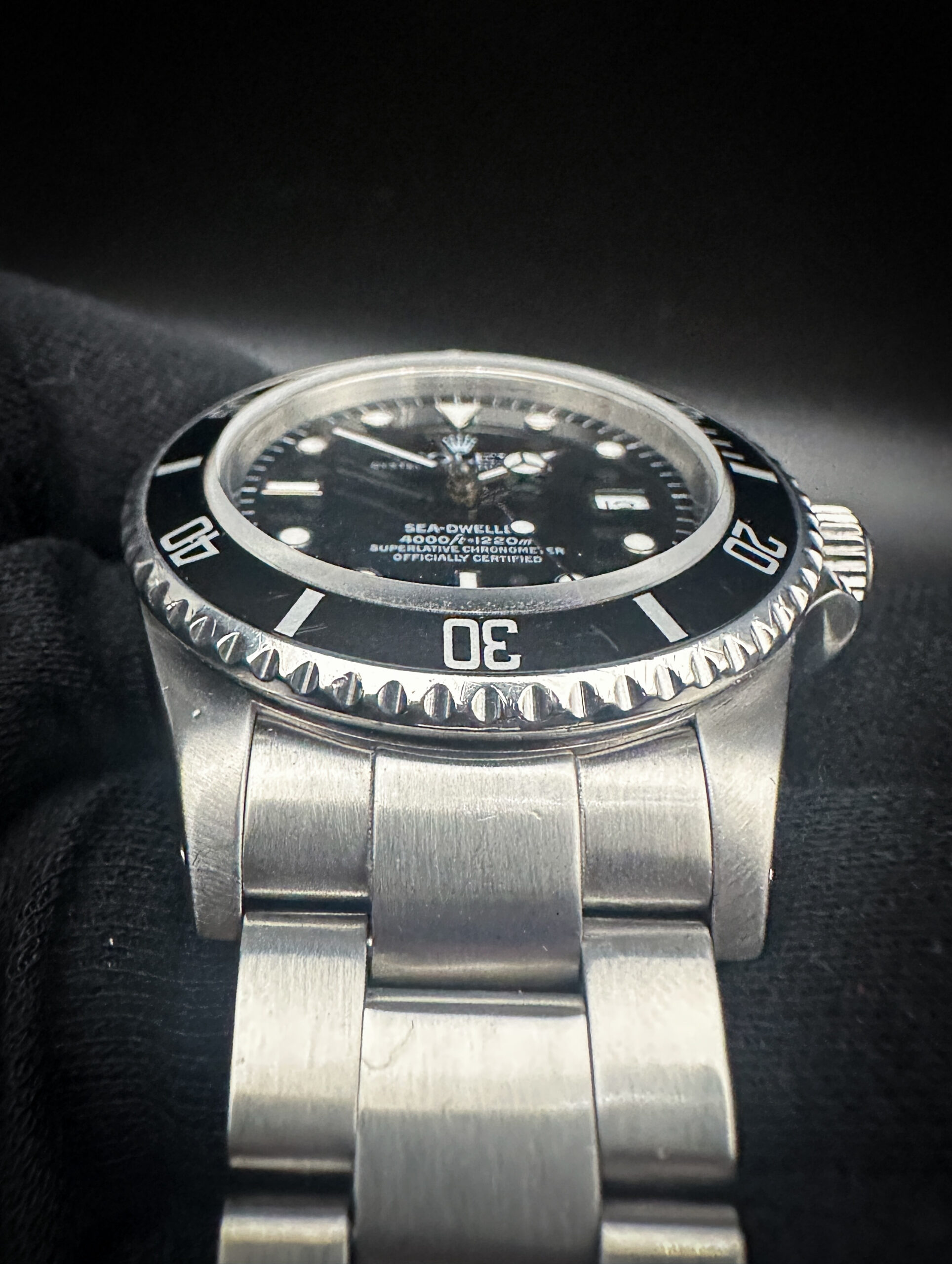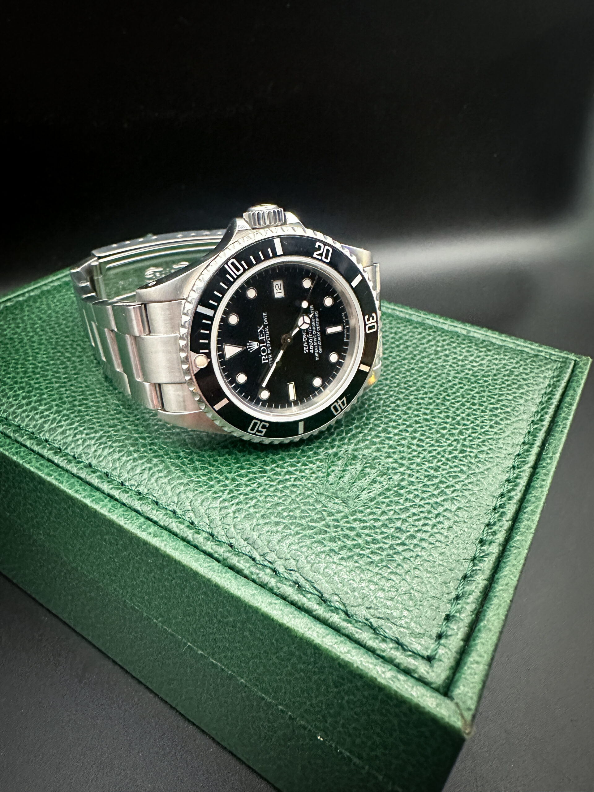 1990 (E-Serial) Rolex Sea-Dweller 16600 in a 40mm stainless steel case, featuring the Rolex caliber 3135 automatic movement. This Rolex has been tested in excellent working order and is ready for daily wear or to be added to a collection. Includes: green Rolex box; pillow; fold-cloth; hang-tag; and TLC warranty/authentication card.