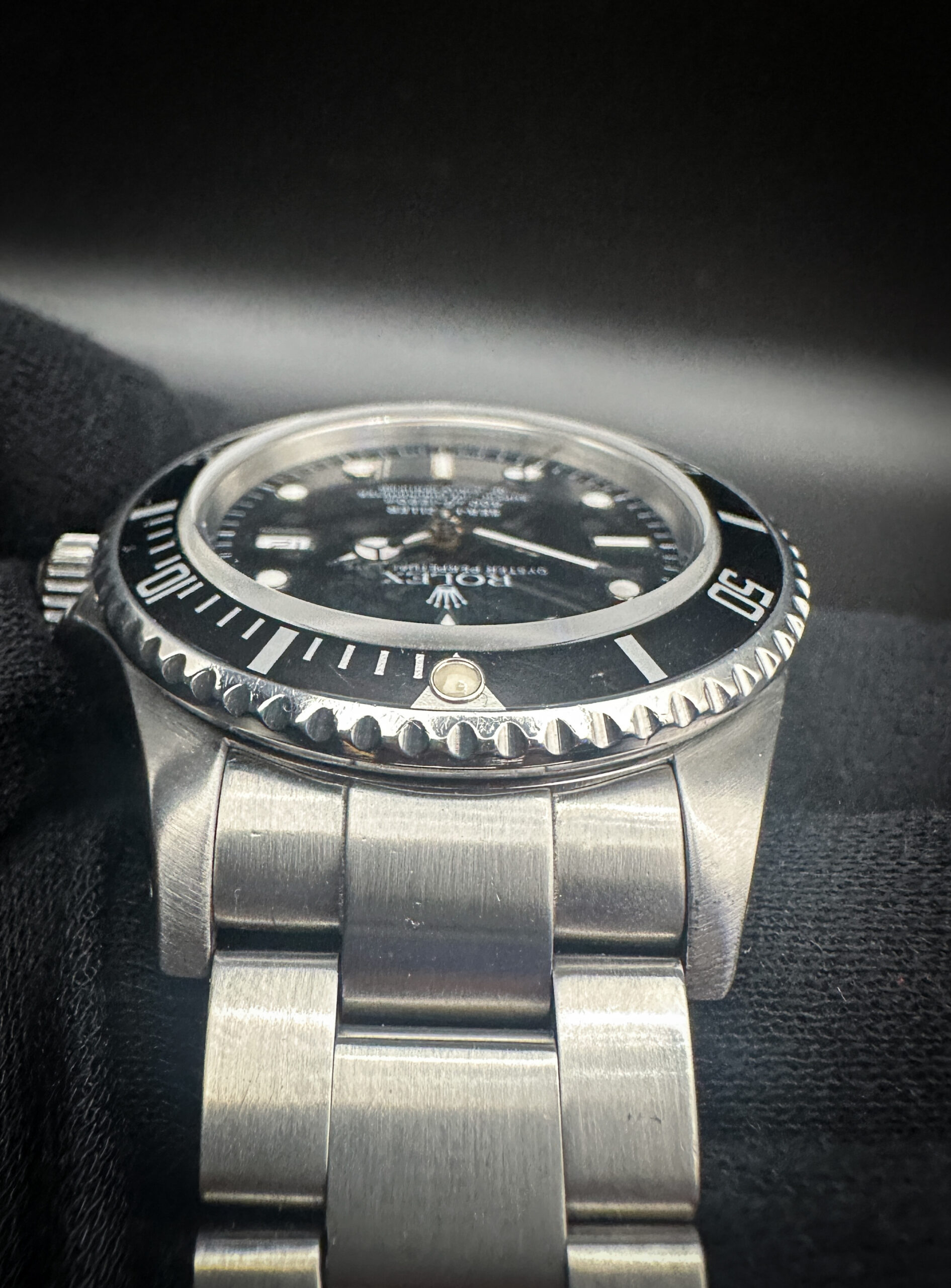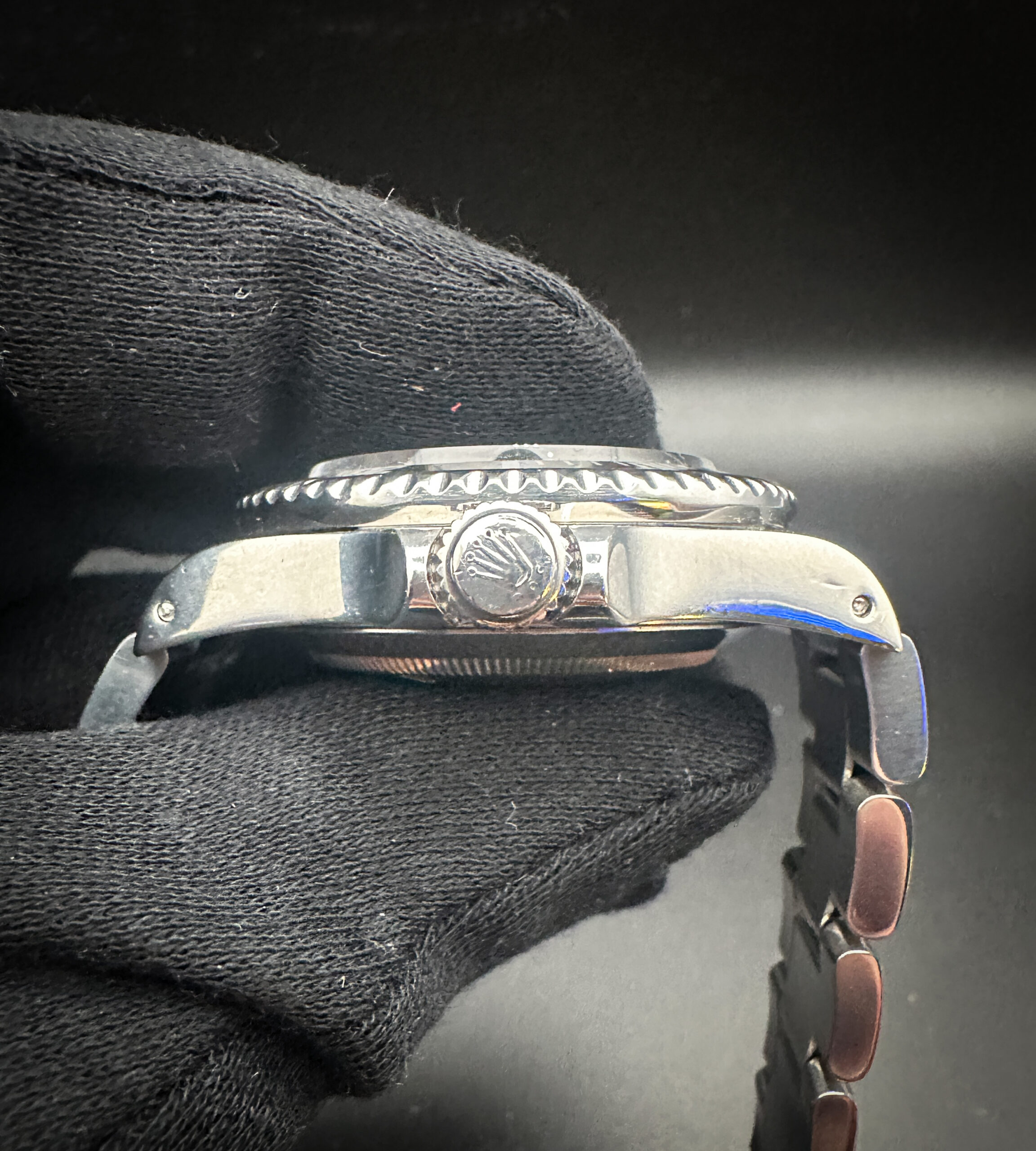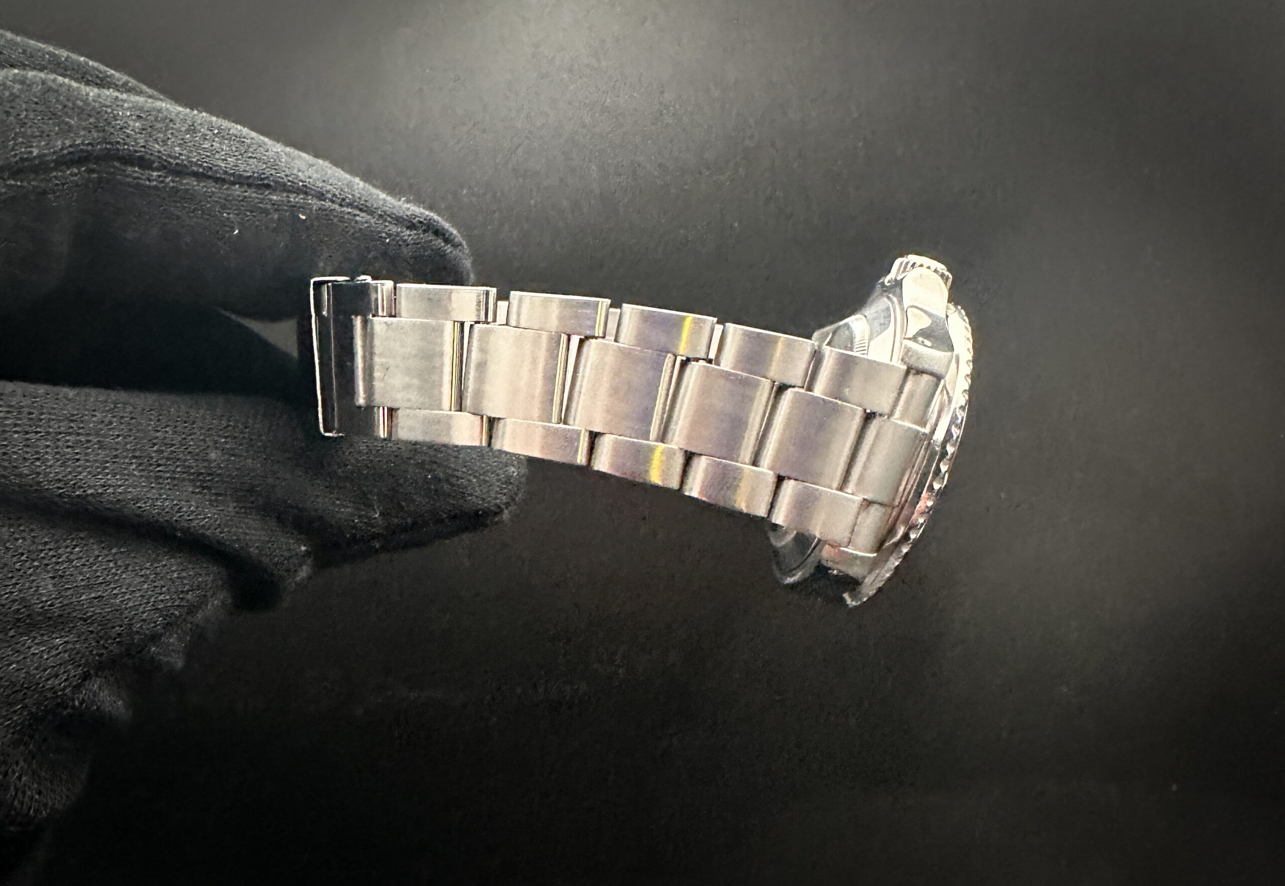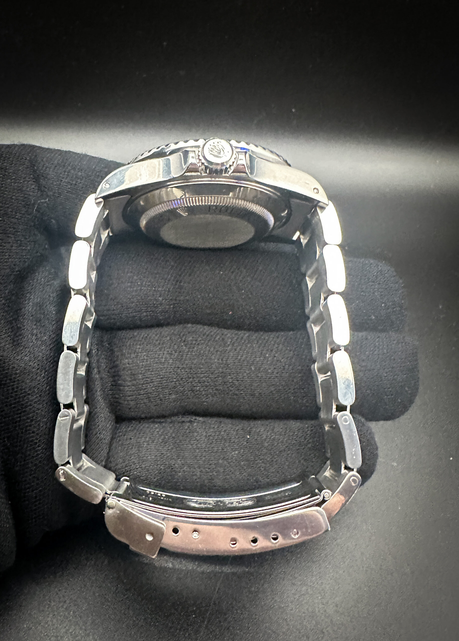 This Sea-Dweller is paired with the original Rolex 93160 Steelinox bracelet with Solid-End-Links. The bracelet has three (3) removable links currently installed and will fit an 8-inch wrist.
