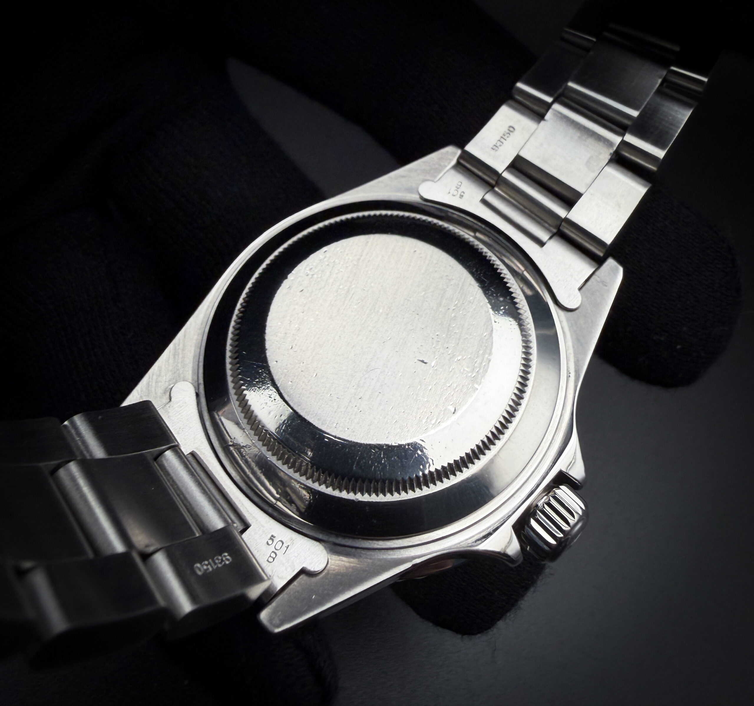 Case and bracelet configuration remain correct to the period, with the watch fitted to a Rolex Oyster bracelet 93150 with 501B end links. The bracelet currently has two (2) removable links installed and will fit up to a 7.75 inch wrist. A new bezel insert has been installed for a clean overall presentation, and the original insert is included for provenance.