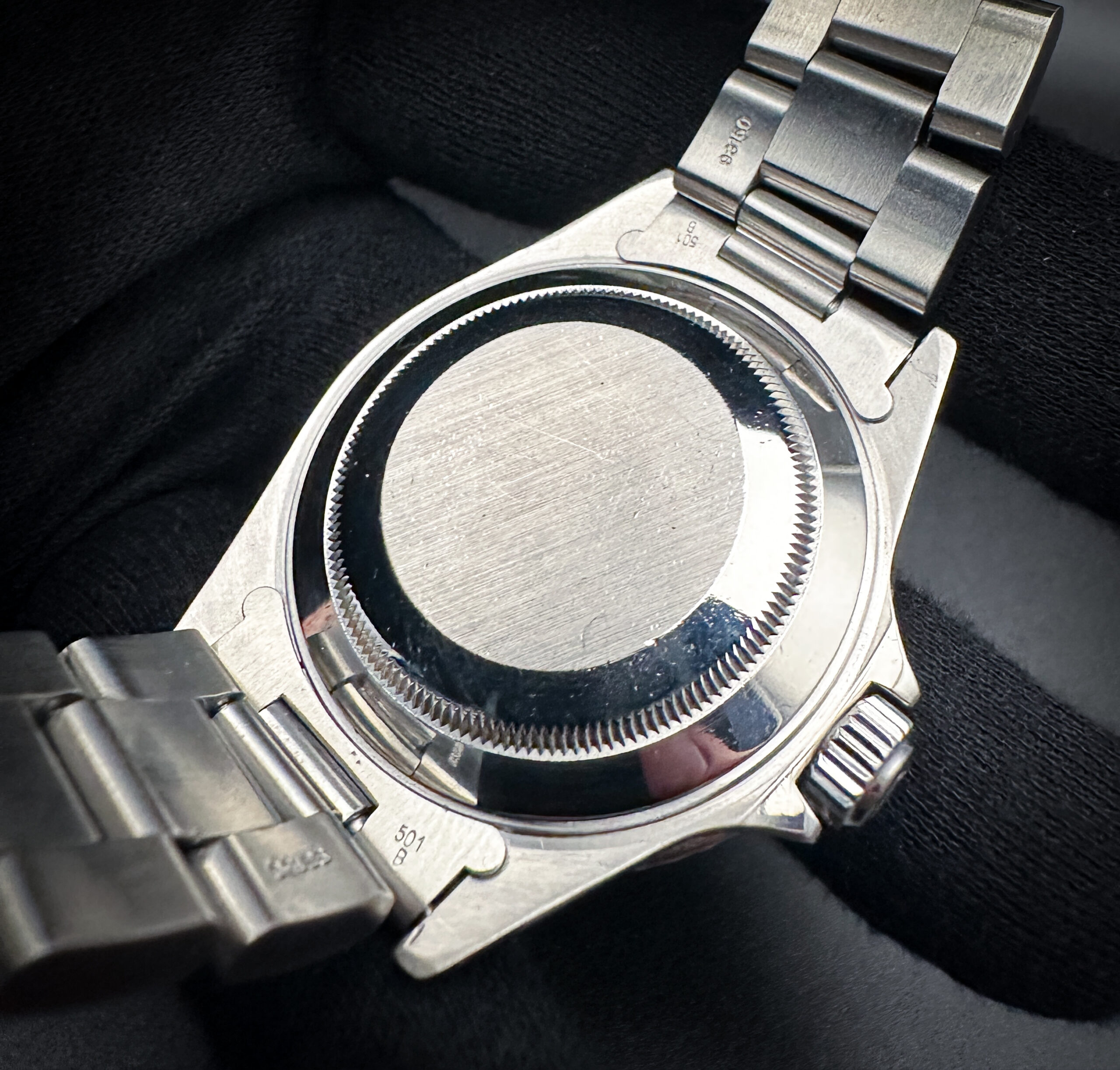Includes the original Rolex Steelinox 93150 (W1) bracelet. The bracelet has one removable link currently installed and will fit a 7.75 inch wrist.