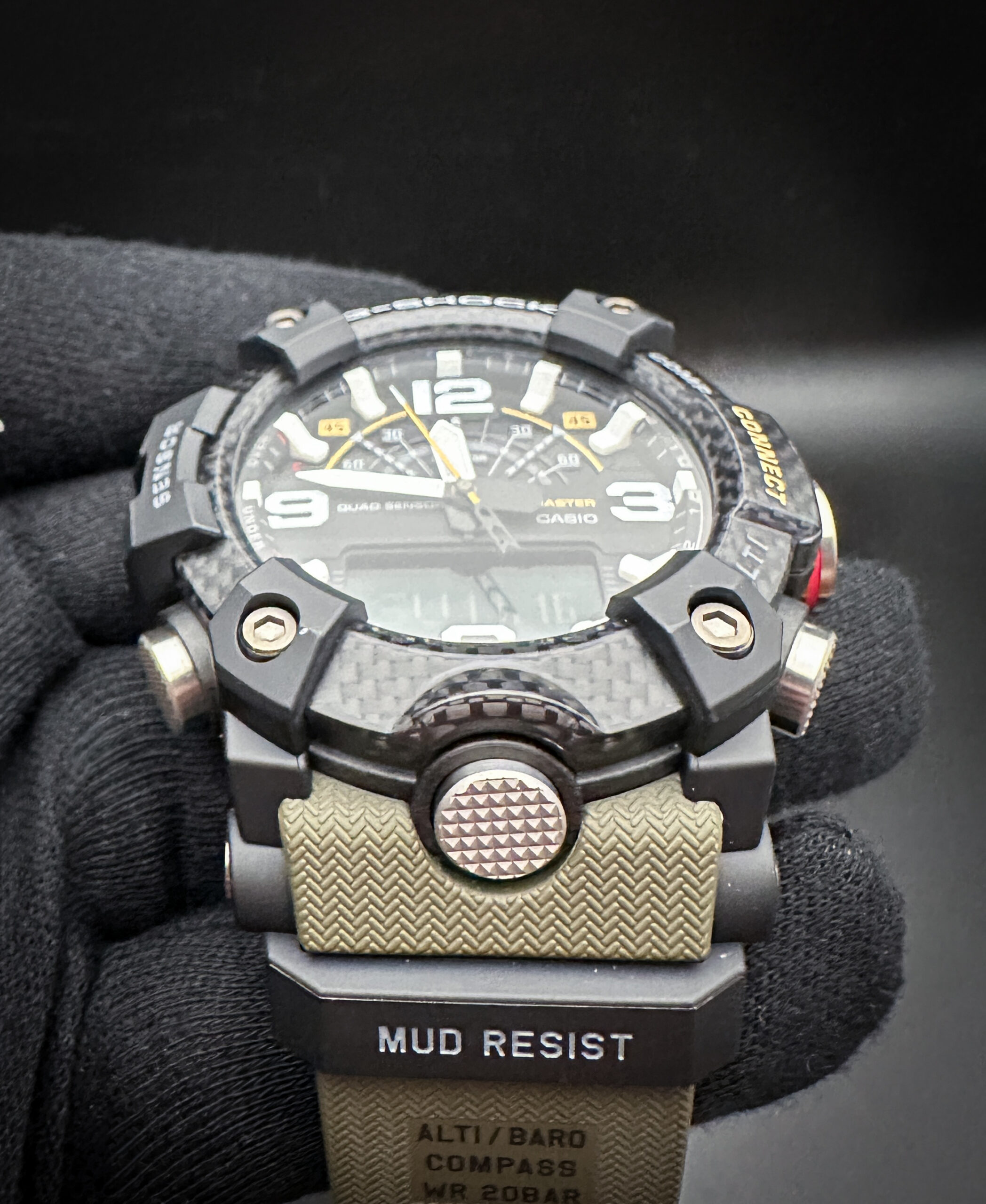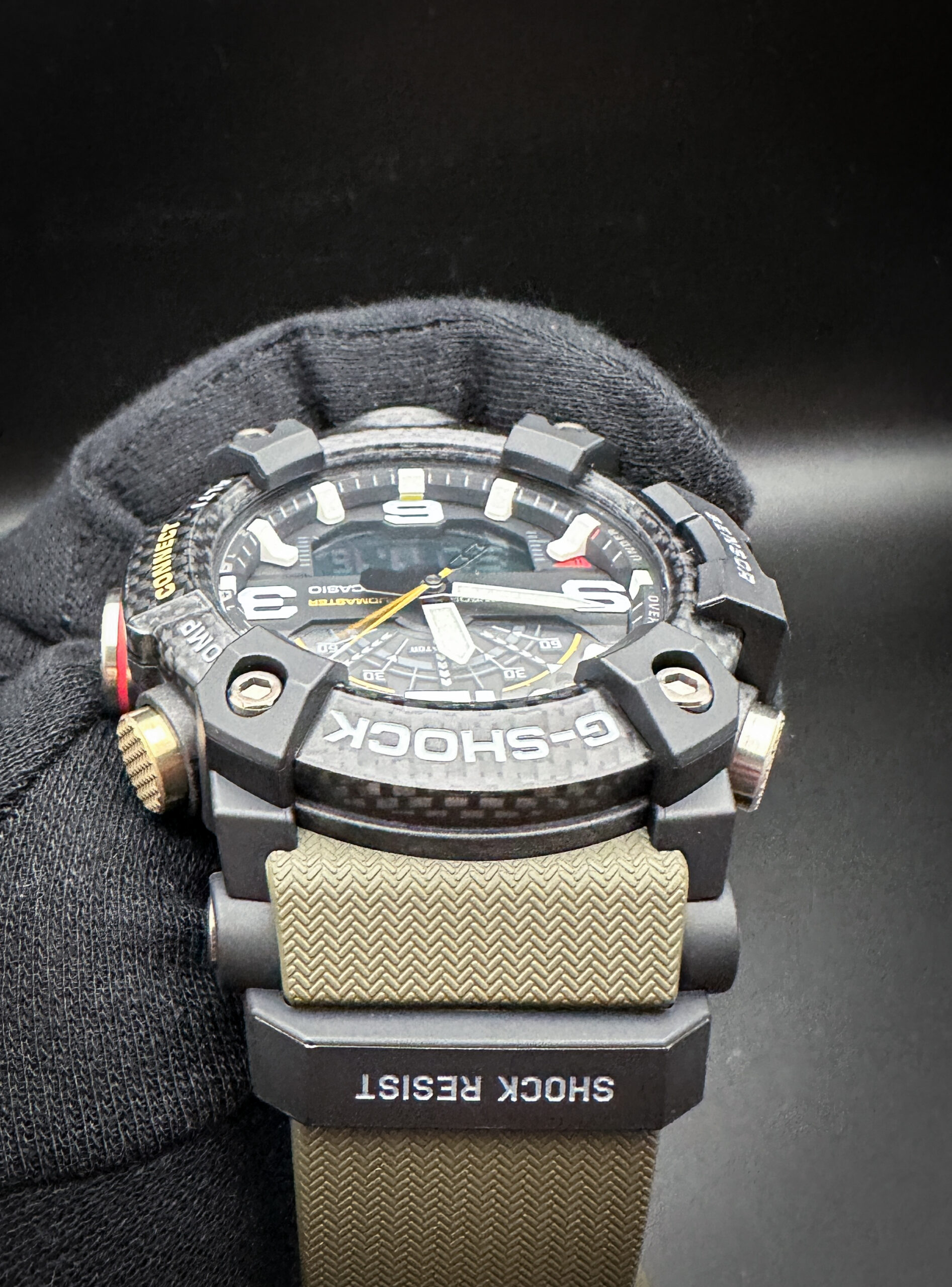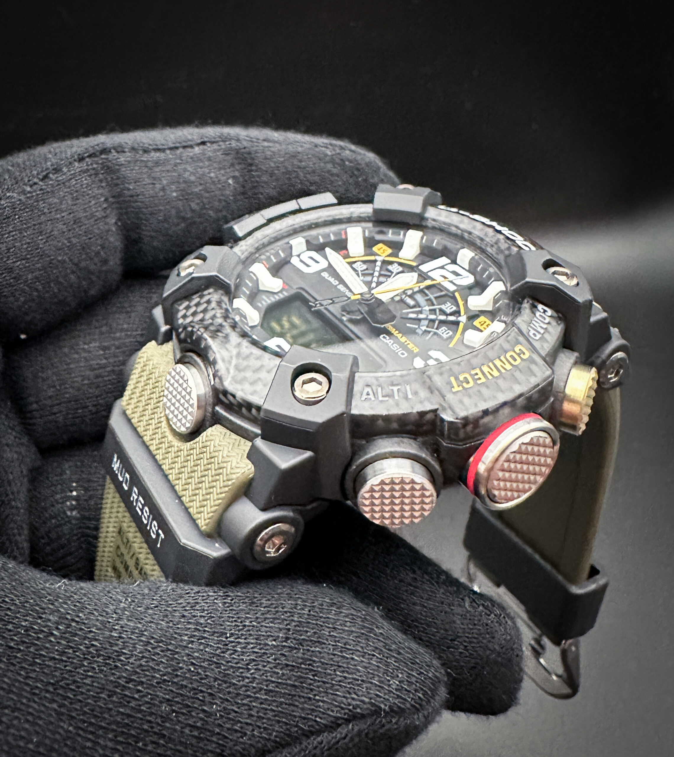 This is a model from the G-Shock Mudmaster Series, designed for use in extreme environments scattered with rubble, dirt and debris, and uses carbon materials.