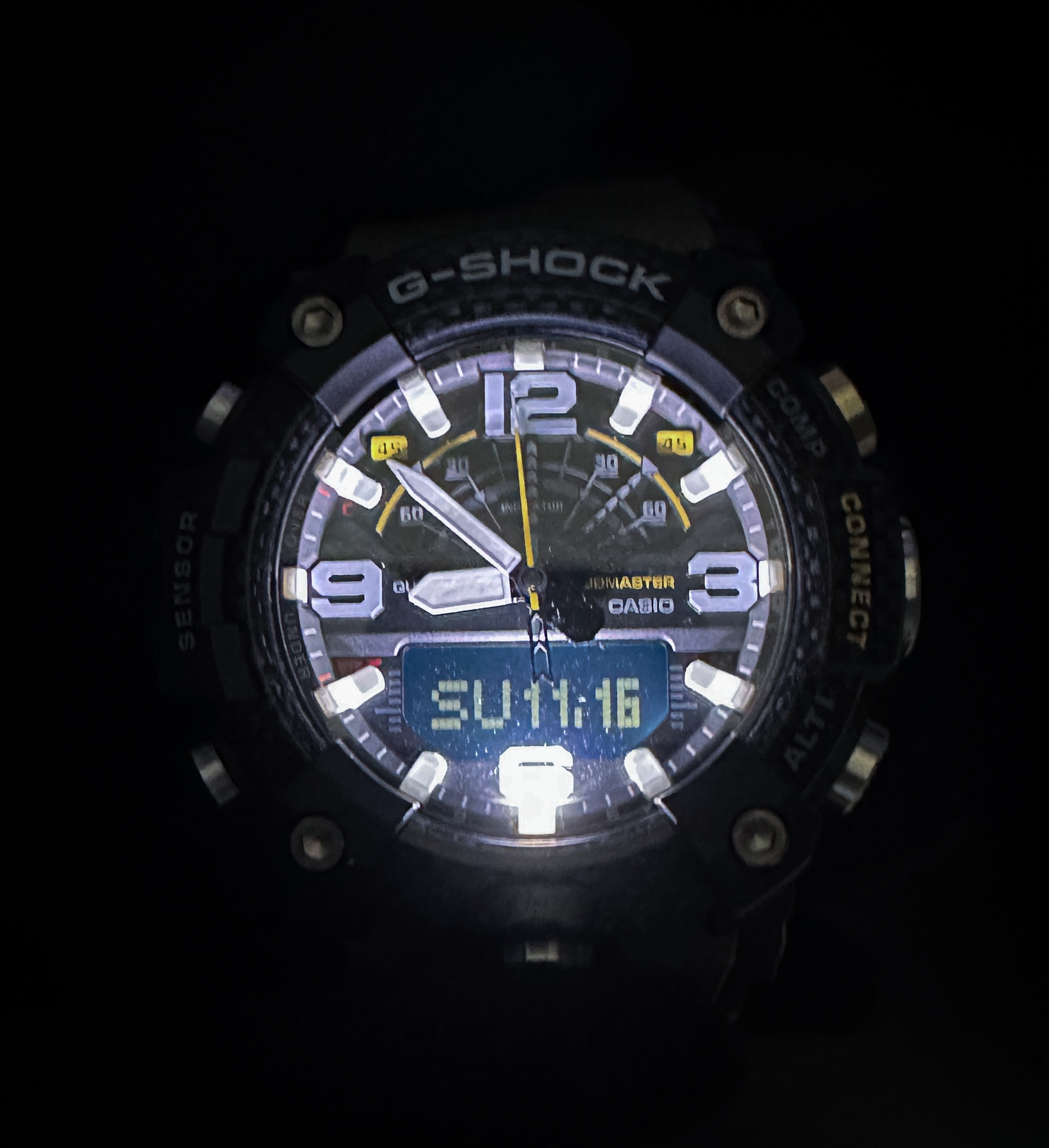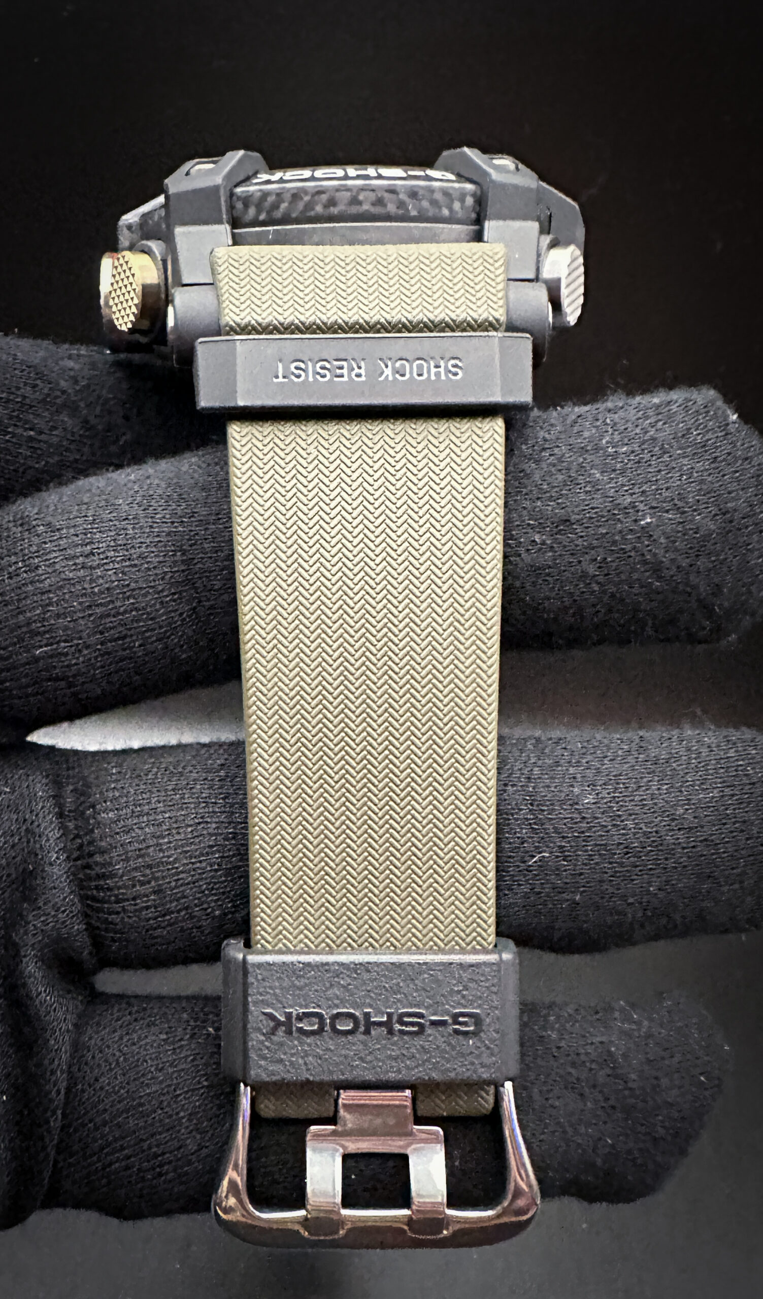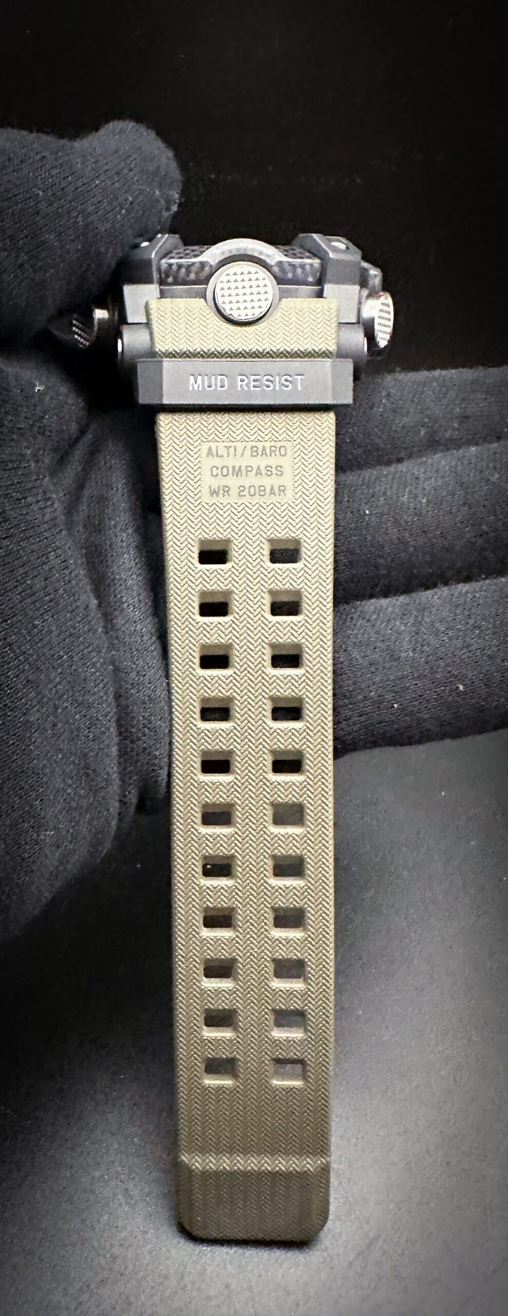 This is a model from the G-Shock Mudmaster Series, designed for use in extreme environments scattered with rubble, dirt and debris, and uses carbon materials.