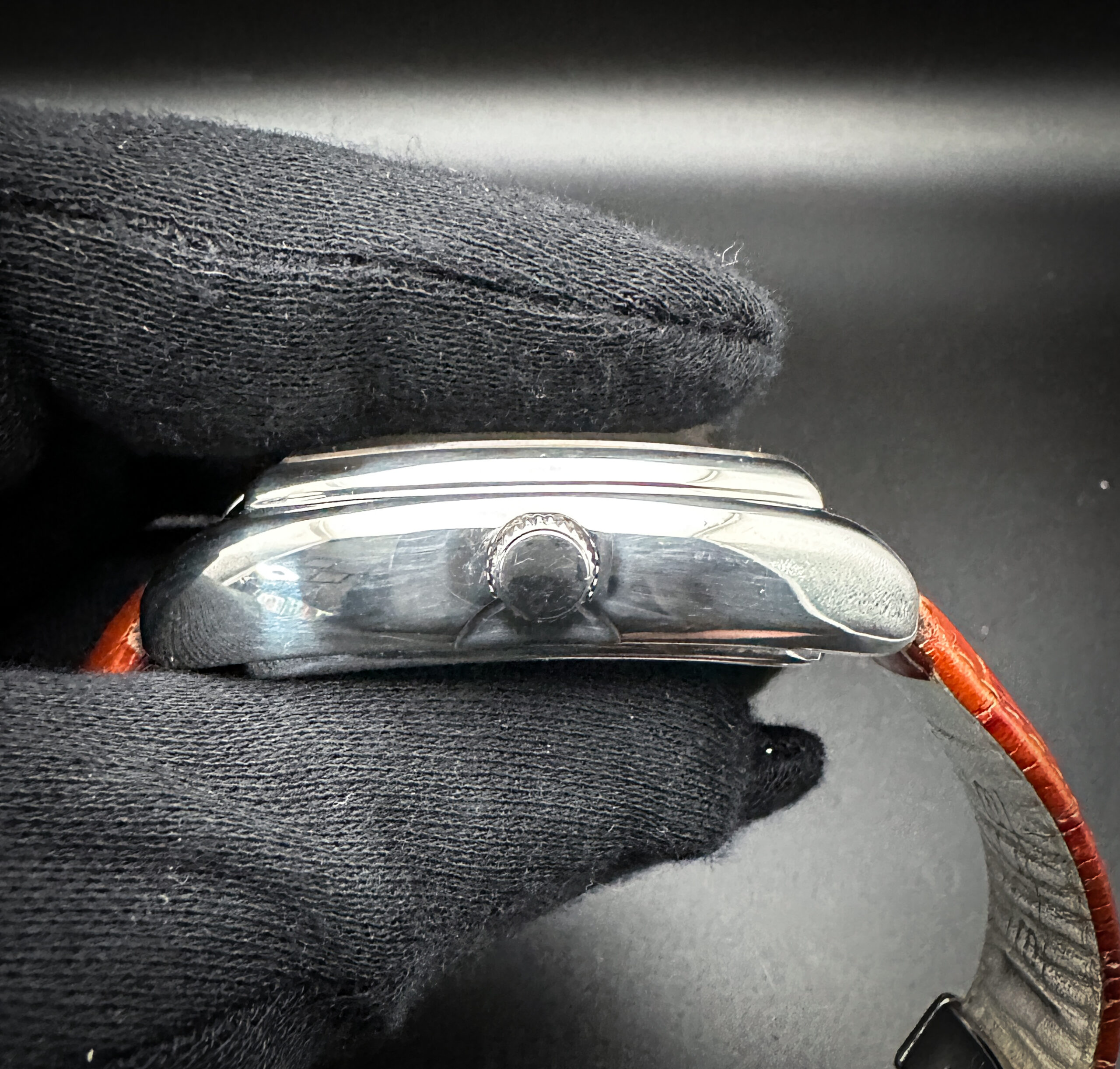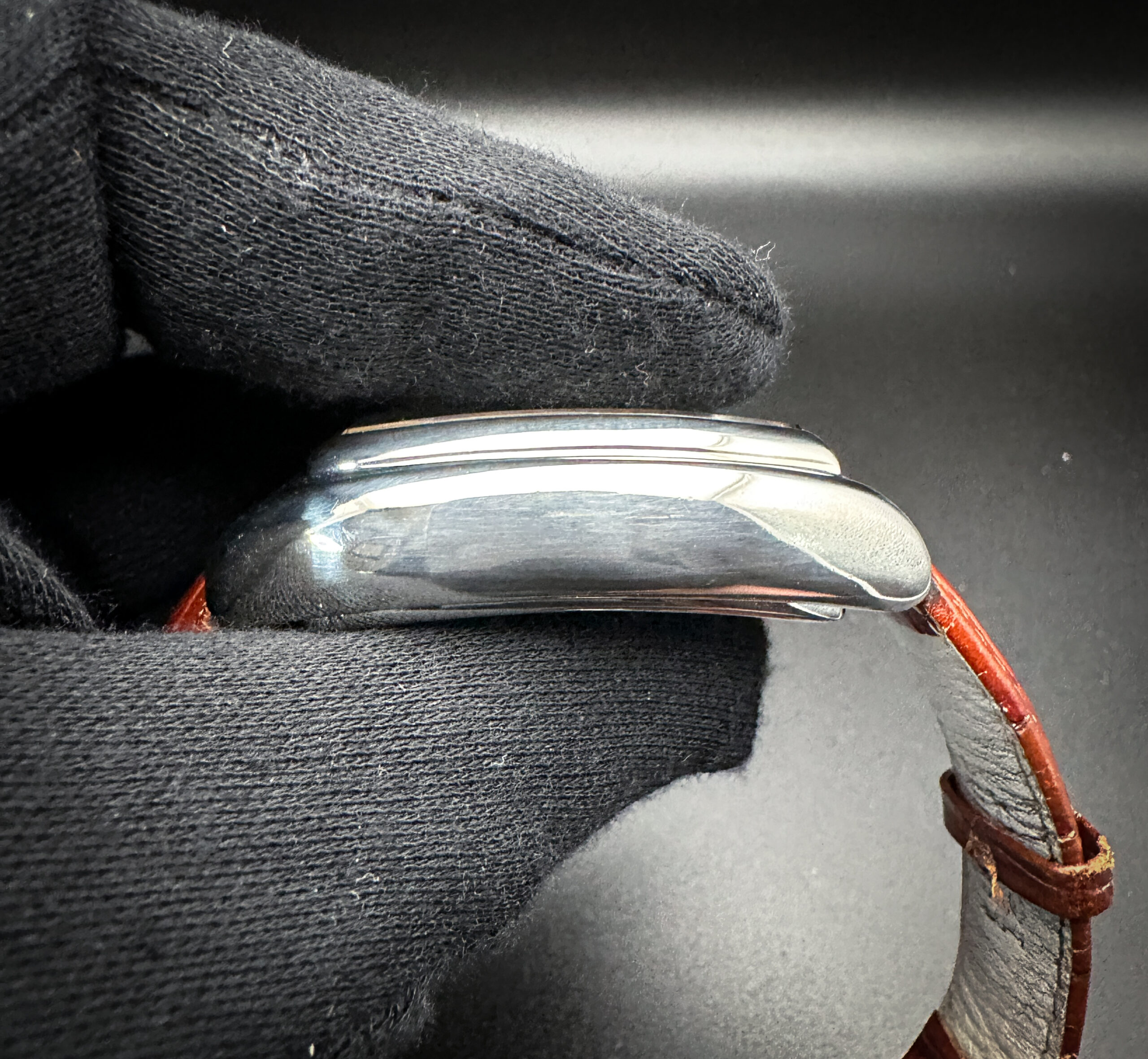The crystal is clear and free of scratches or edge-chips. The original dial and hands are clean with no discoloration or stains. The case is in excellent condition, with no significant scratches, marks, or dents.