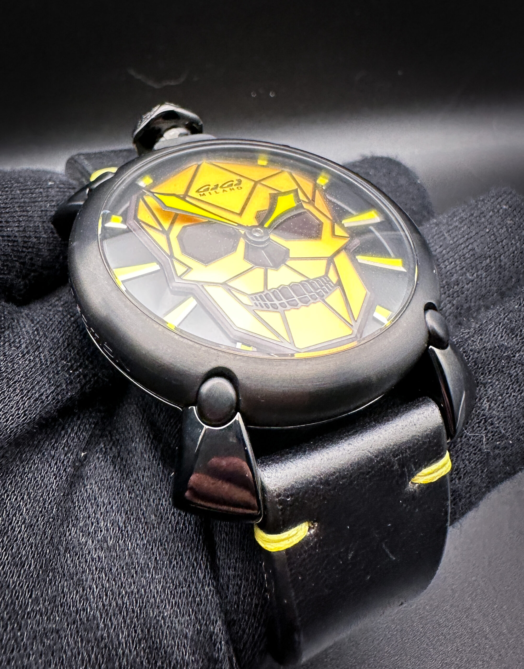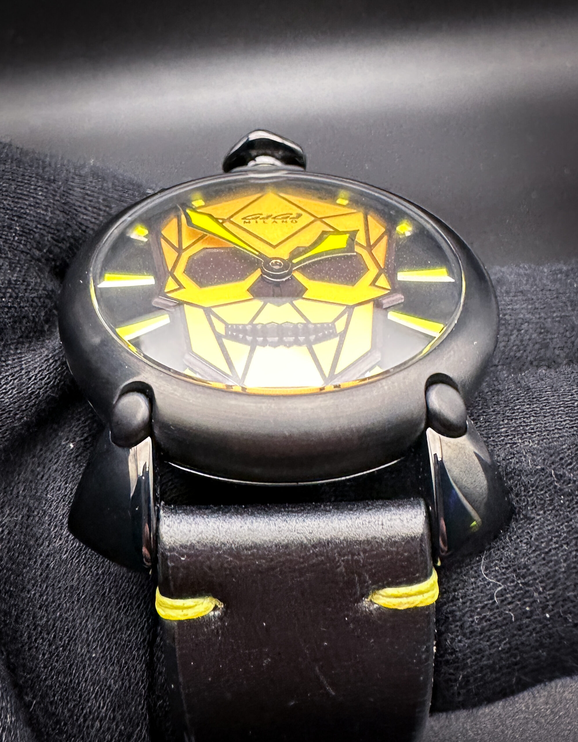 2024 GaGa Milano “Bionic Skull” 5062.015 Limited Edition #079/500 in a 48mm black stainless steel case, featuring an exhibition caseback with hand-wound movement. This GaGa has been tested in excellent working order and is ready to wear or to be added to a collection. Includes: Outer box, inner case, instruction manual, hang-tag, and warranty booklet (2024/3/22).