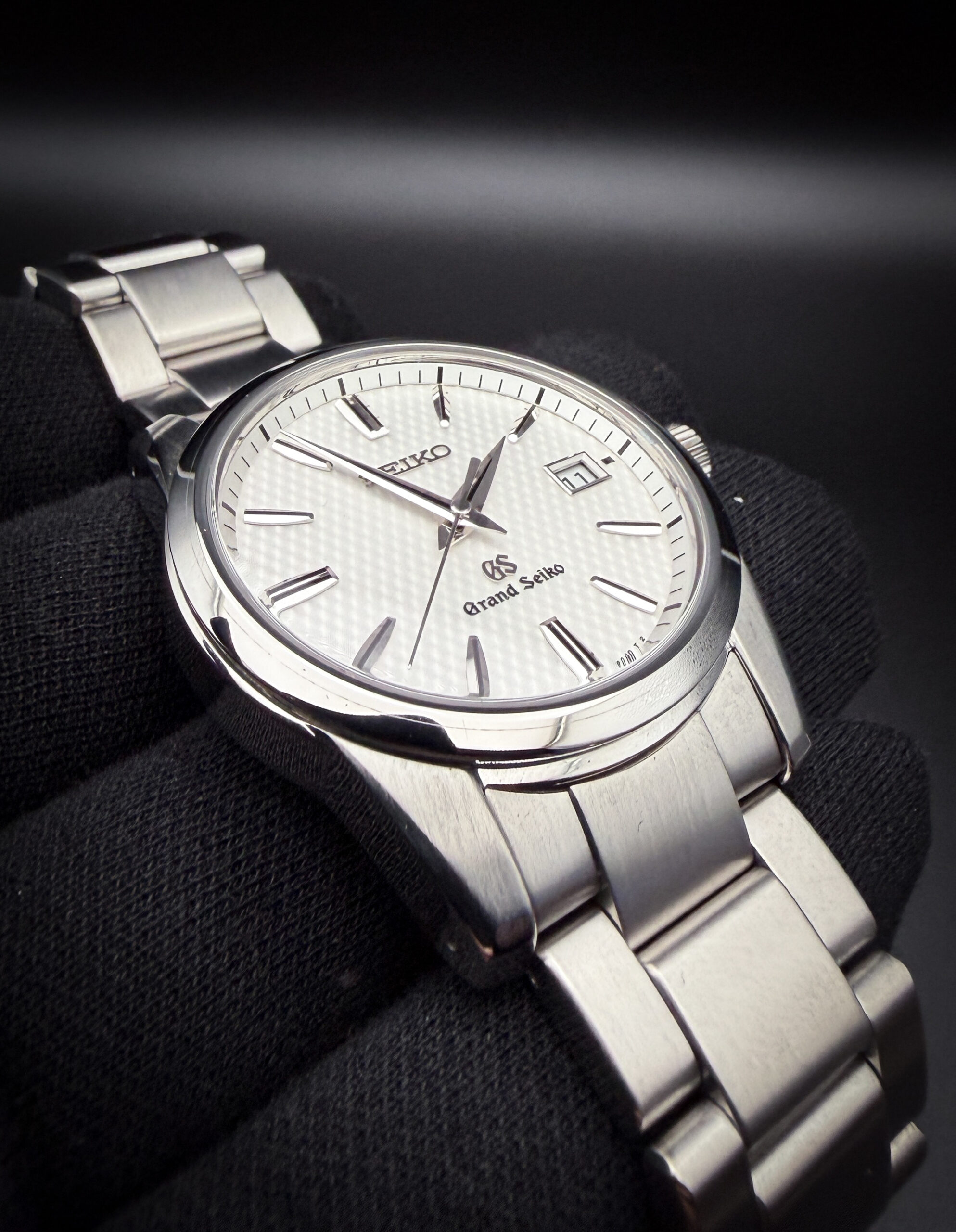 The Grand Seiko Heritage Collection SBGX253 is a masterclass in restrained precision and everyday refinement. This example features the crisp white dial variant, offering a clean, highly legible aesthetic that perfectly showcases Grand Seiko’s razor-sharp, Zaratsu-polished hands and faceted hour markers. Light plays beautifully across the dial and indices, delivering the signature brilliance and depth collectors expect from the brand. The 37mm stainless steel case measures approximately 10mm thick, giving it an ideal, versatile presence on the wrist—substantial yet refined. The solid-link stainless steel bracelet provides a balanced feel and excellent comfort for daily wear.