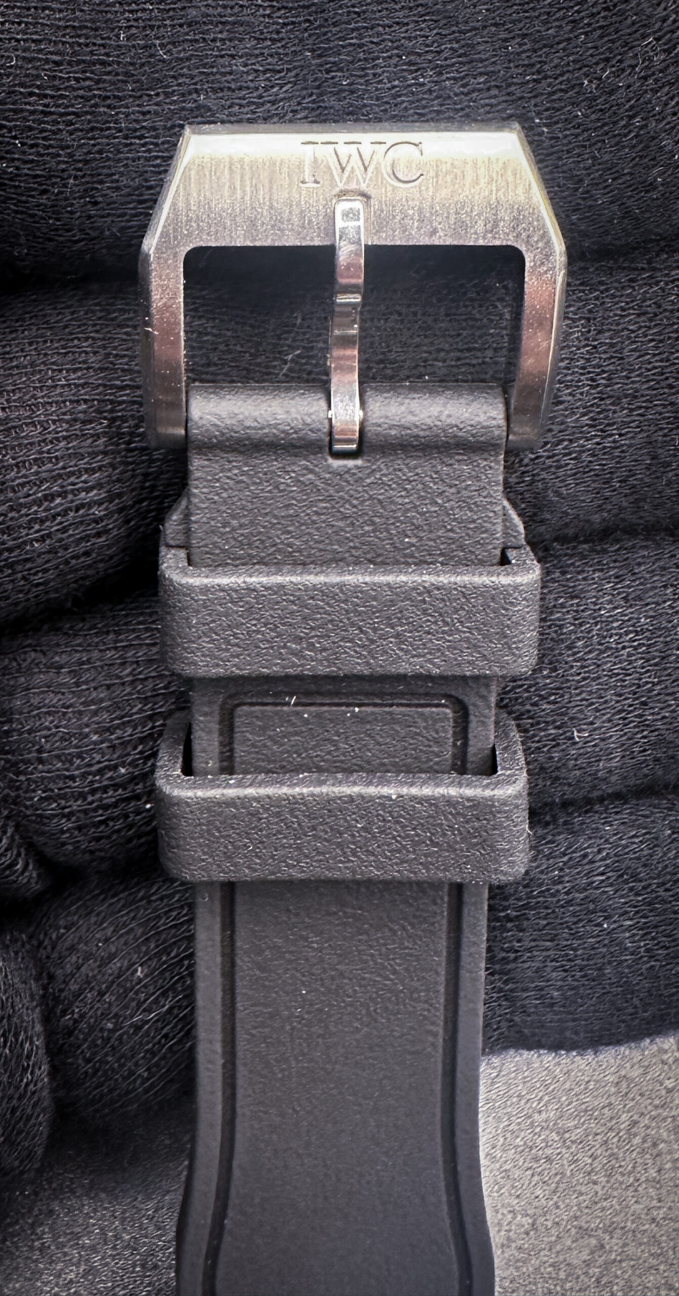 Includes: Black natural rubber strap; Red natural rubber strap; Black/Red NATO strap; Desert-Tan NATO Strap; Wrist Wraith Watch Roll; and TLC authentication/warranty card. Please note that all straps are aftermarket, new and unworn. The Original IWC Buckle is included and installed on the black strap.