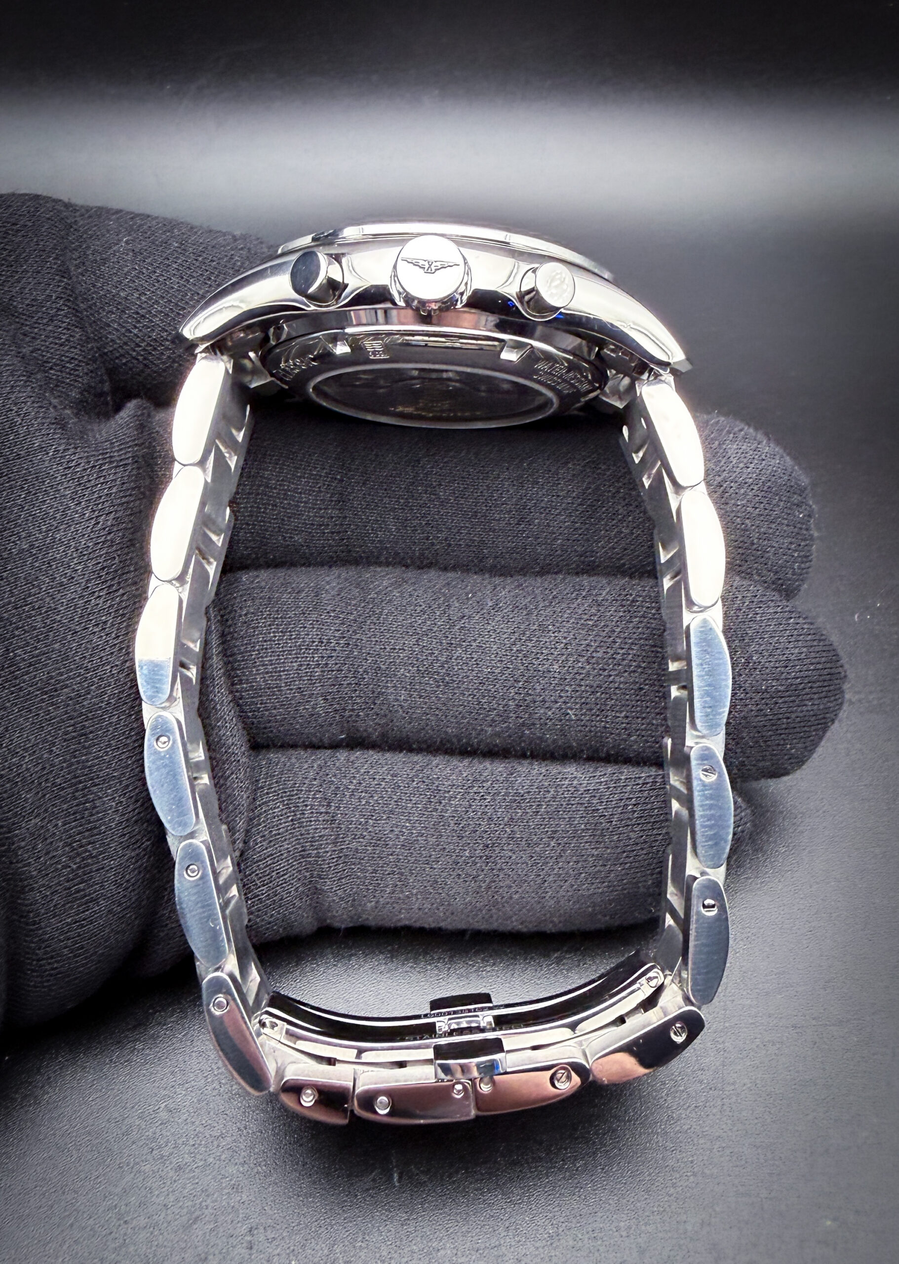 Powering this reference is the Longines caliber L688.2, an exclusive column-wheel automatic chronograph movement visible through the sapphire exhibition caseback. Based on ETA’s A08.L01 architecture, the L688.2 delivers smooth chronograph engagement, a robust ~54-hour power reserve, and reliable daily performance. The column wheel construction elevates this piece beyond a standard cam-actuated chronograph, offering mechanical refinement typically found at a higher price point.