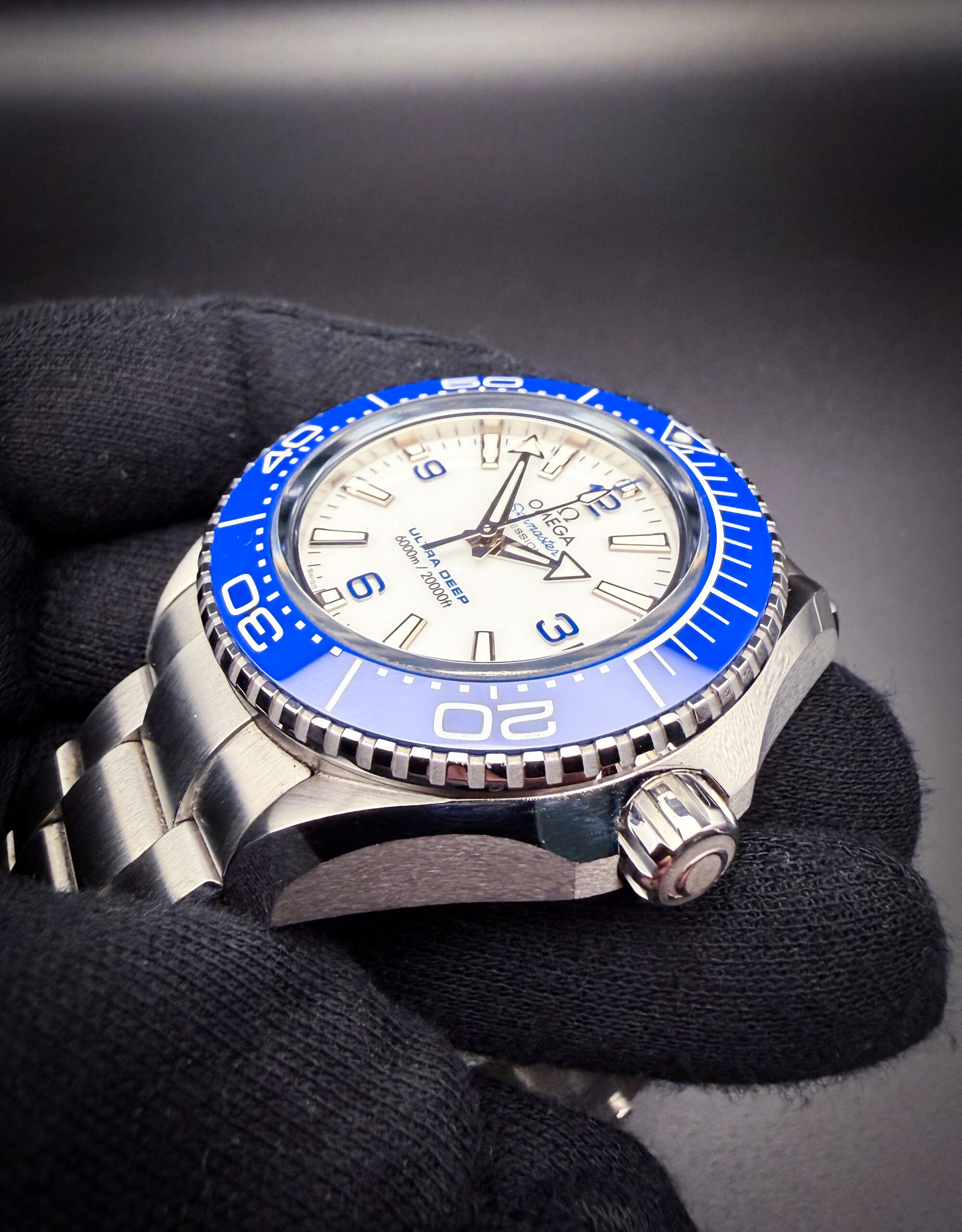 Engineered for true professional use, the Ultra Deep is rated to 6,000 meters (20,000 feet) of water resistance, utilizing Omega’s O-MEGASTEEL construction for superior strength and corrosion resistance. The watch is METAS-certified, offering resistance to magnetic fields up to 15,000 gauss while maintaining exceptional chronometric performance.