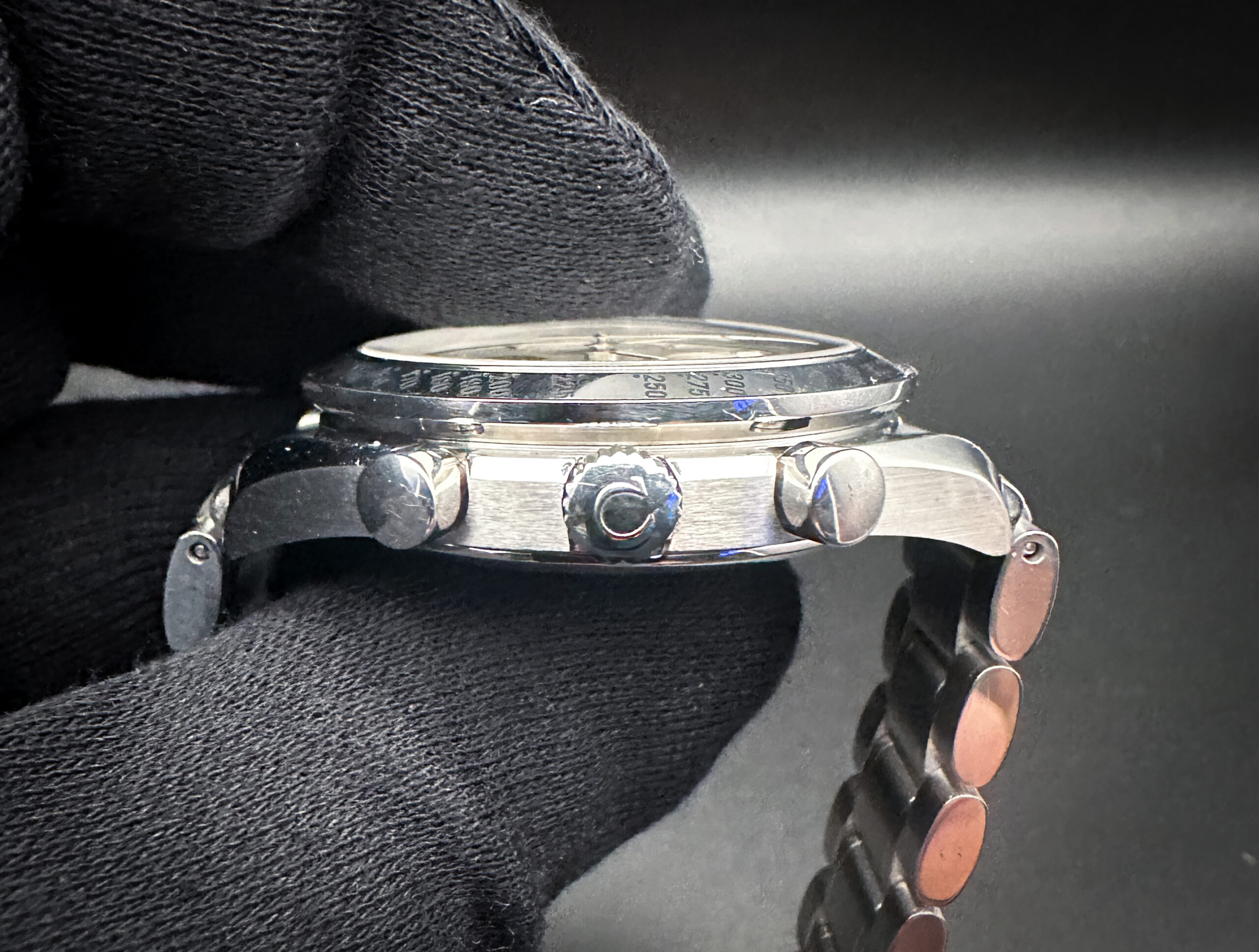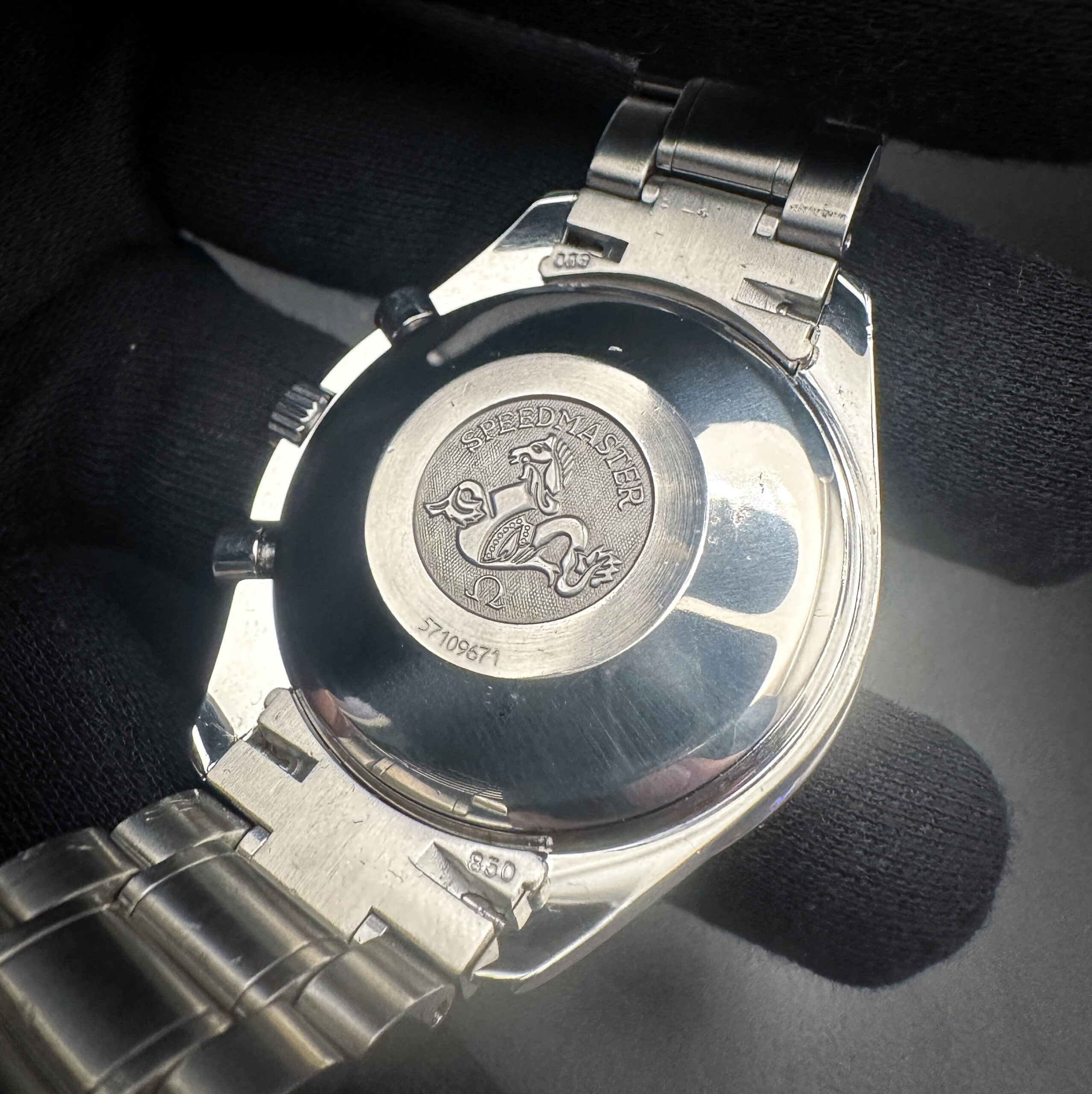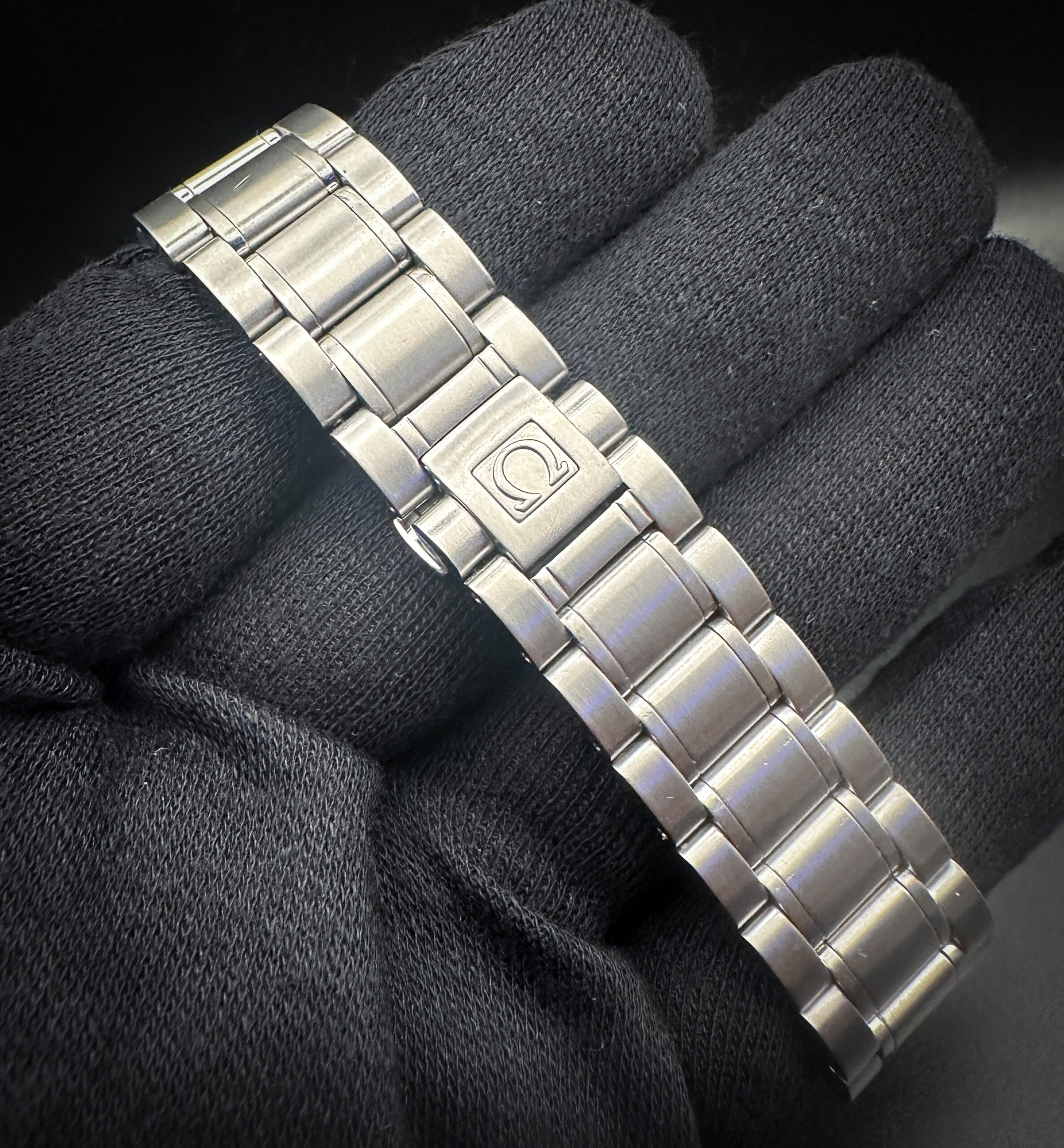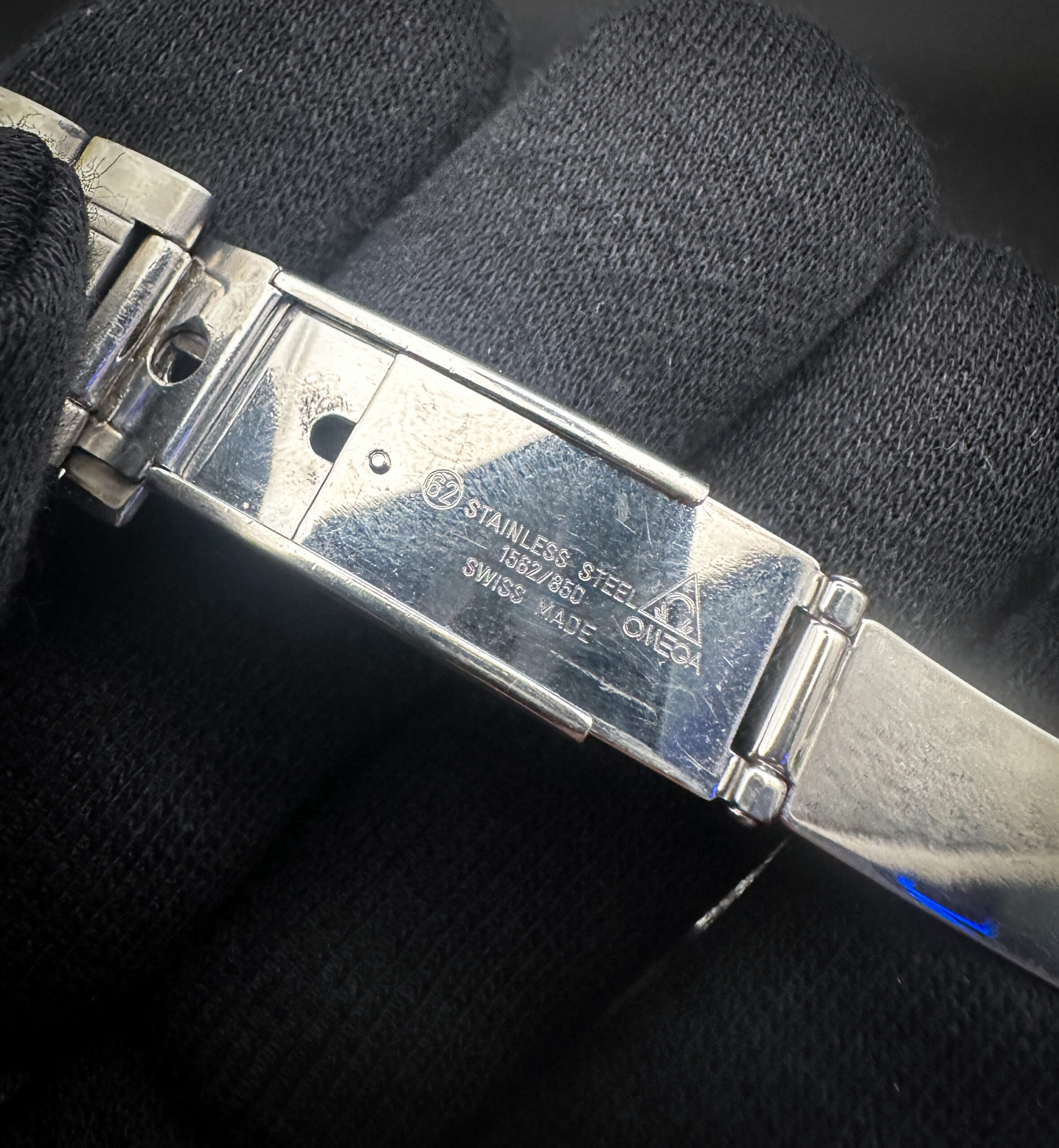 This Speedmaster is paired with the original Omega stainless steel 1562/850 bracelet. The bracelet has three (3) full half-link currently installed and will fit a 7.75 inch wrist.