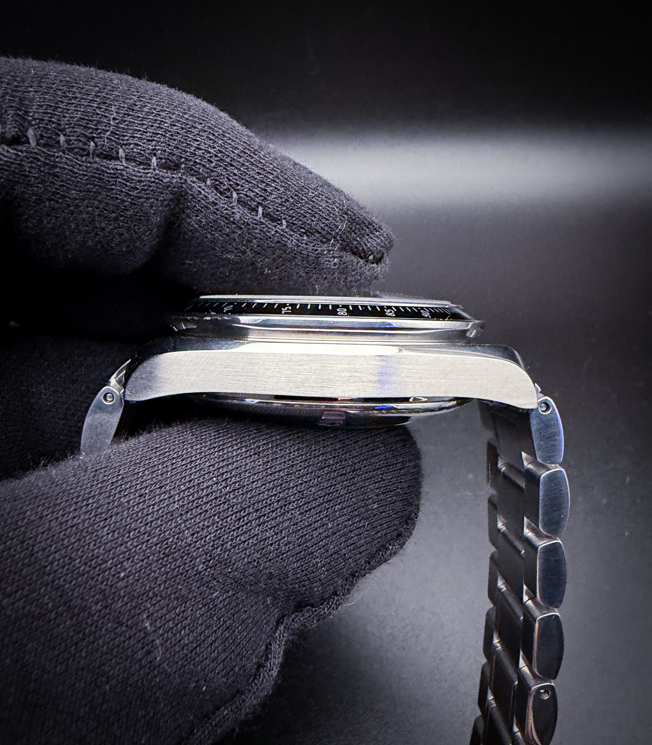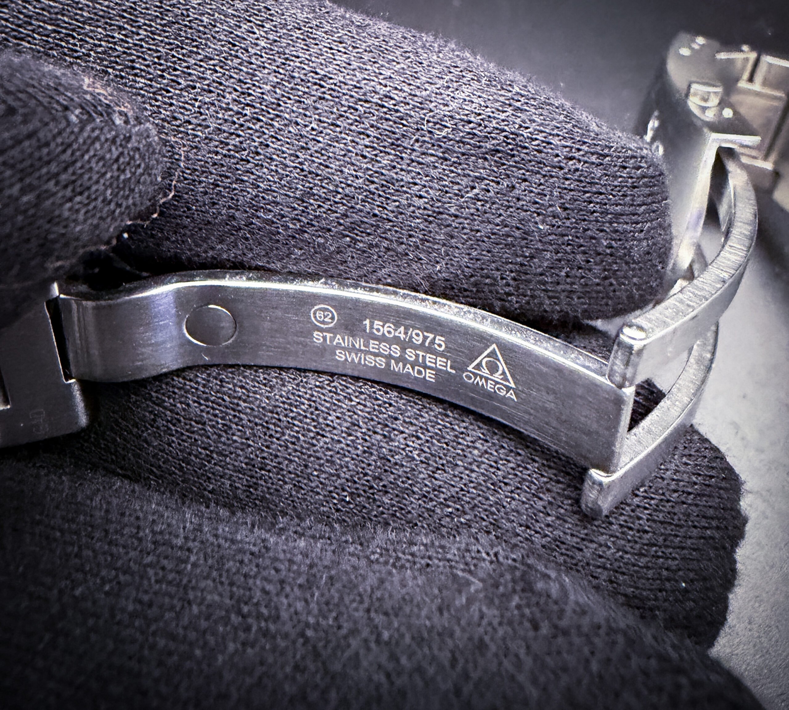 Powering the watch is the Omega Caliber 1164 automatic chronograph movement, known for its durability and smooth operation. The chronograph functions reset crisply and the watch is running strong. The stainless steel bracelet remains in very good condition, showing normal, honest signs of wear consistent with careful ownership.