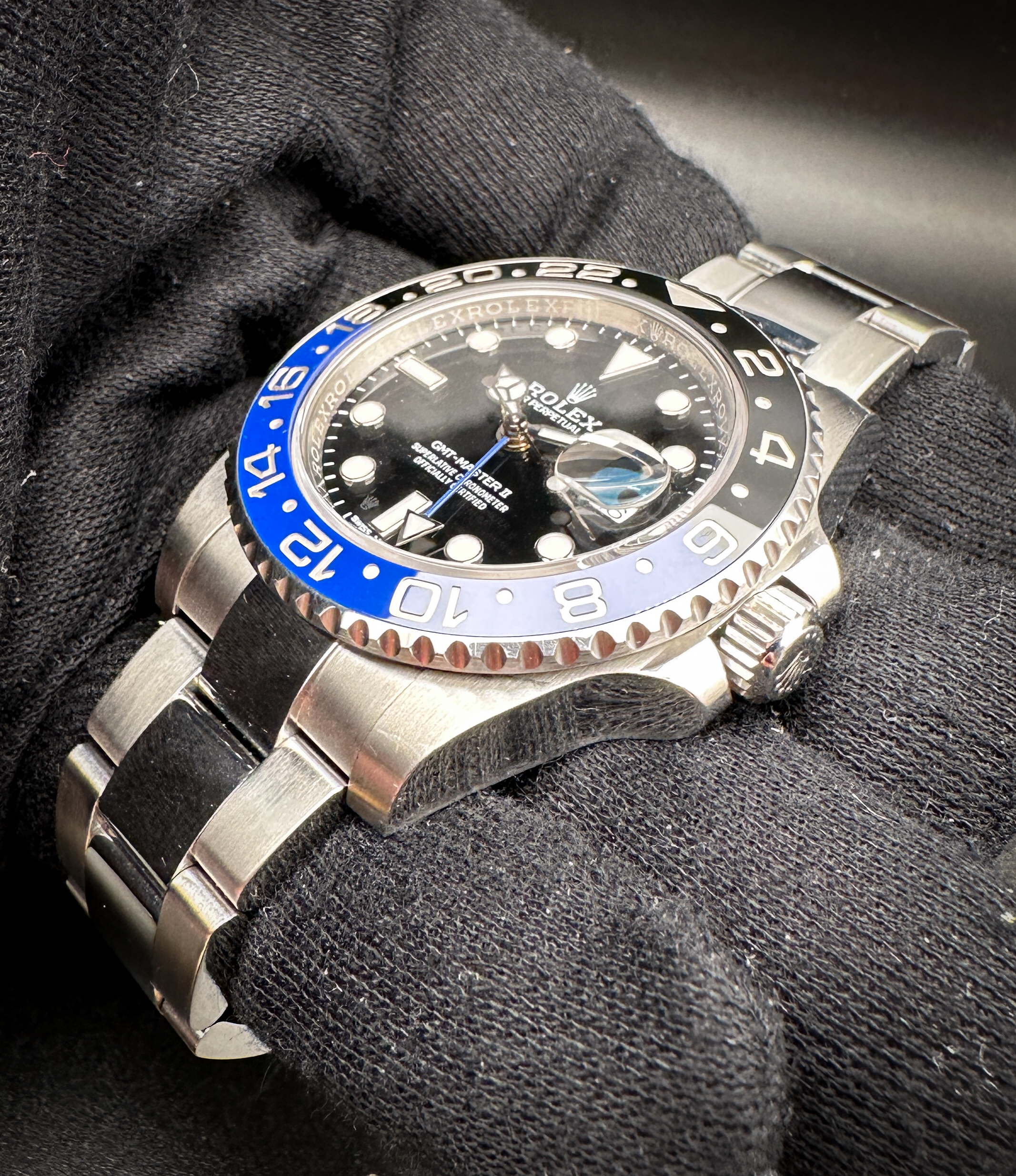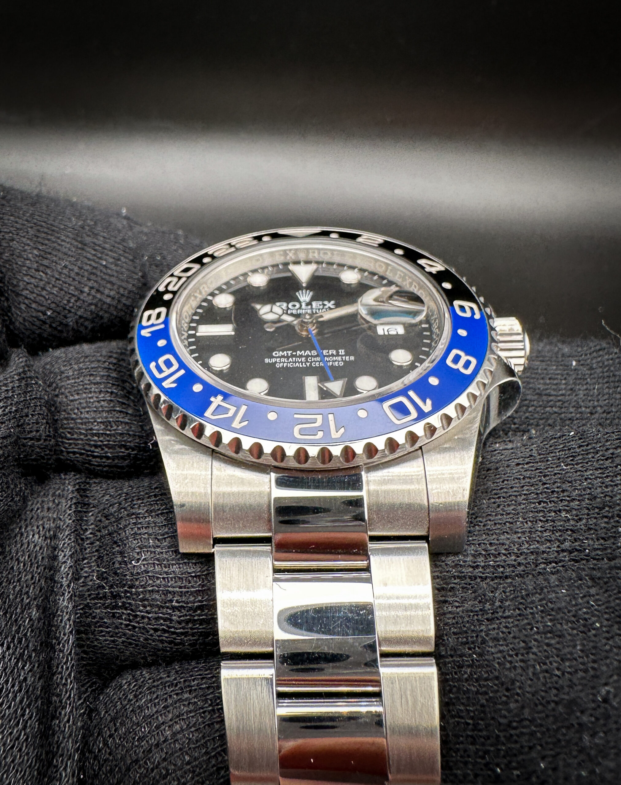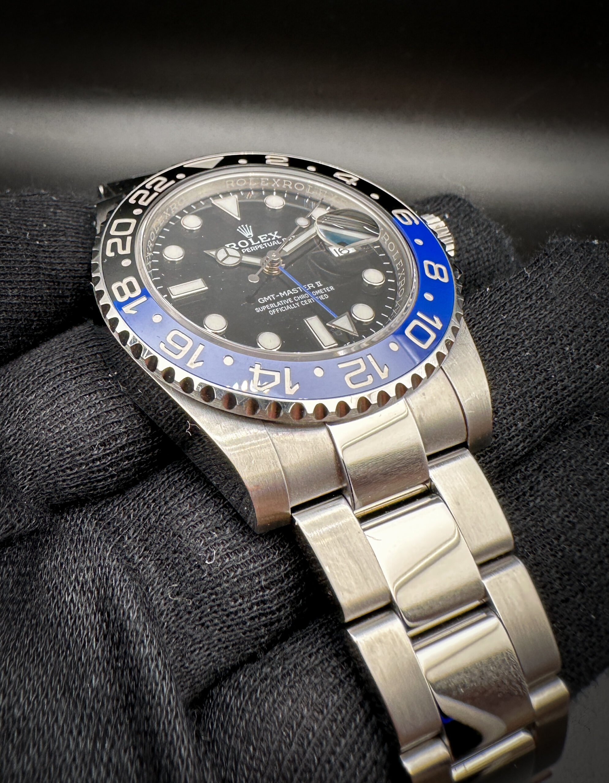 Rolex GMT Master-II “Batman” 116710BLNR in 40mm stainless steel case, featuring the Rolex Caliber 3138 automatic movement. This Rolex has been tested in excellent working order and is ready to wear or to be added to a collection. Includes: Outer sleeve; outer box; inner case; white hang tag w/ serial; green hang tag; GMT Manual; Service Manual; leatherette wallet; and warranty card.