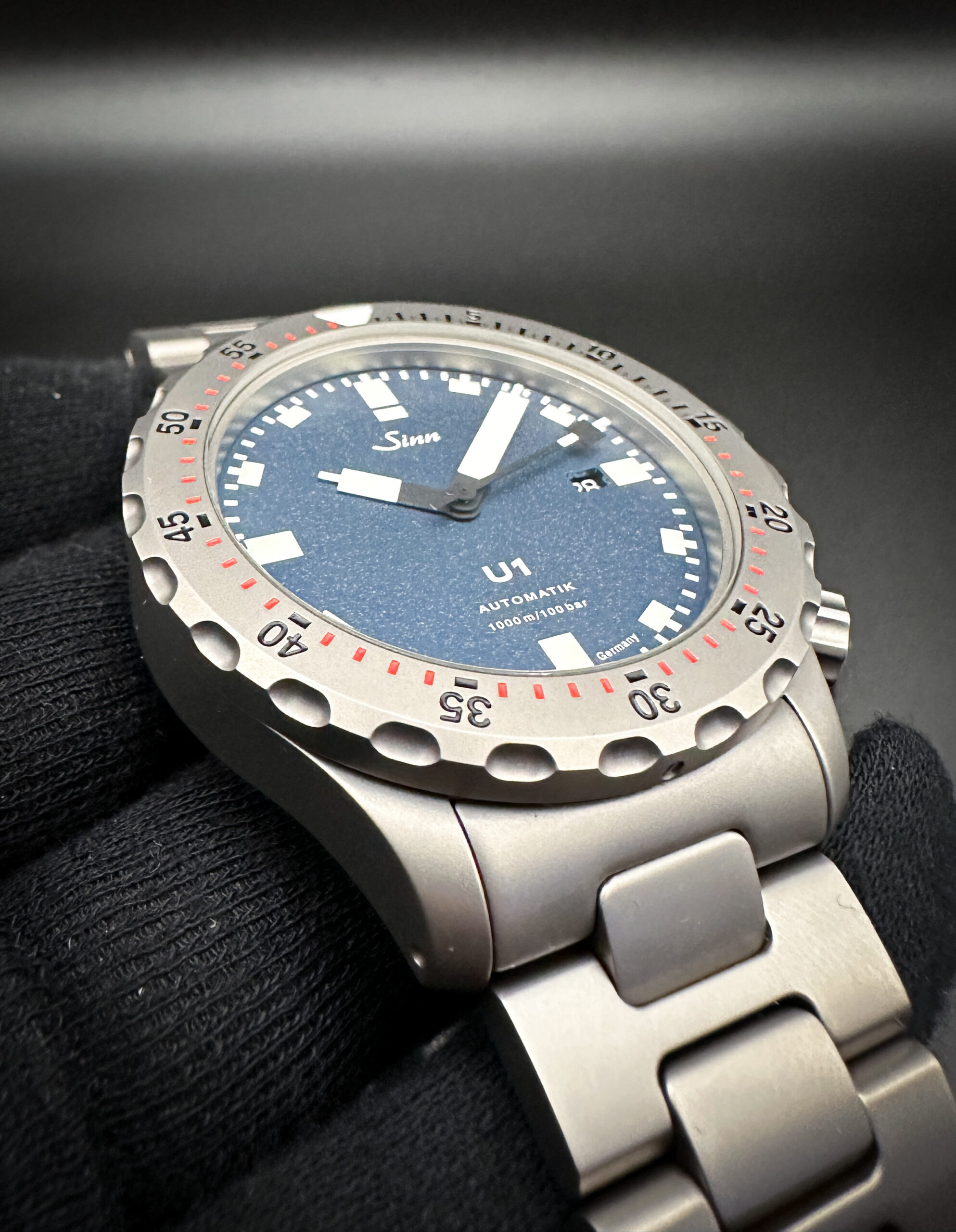 2019 Sinn U1 1010.18484 in a 44mm stainless steel case. This Sinn includes: outer box; inner case; band tool; link tool; instruction booklet; three extra links; and warranty card.