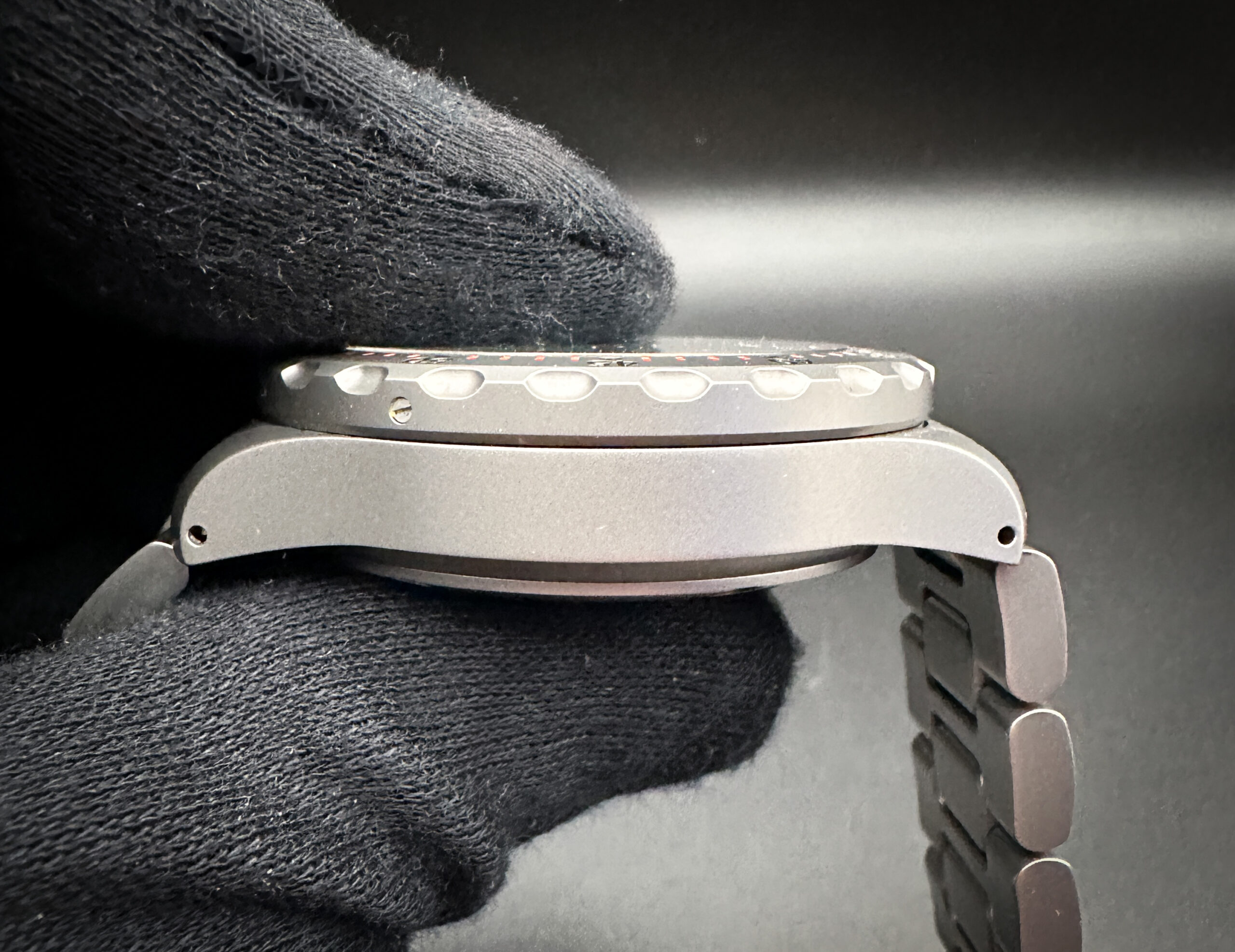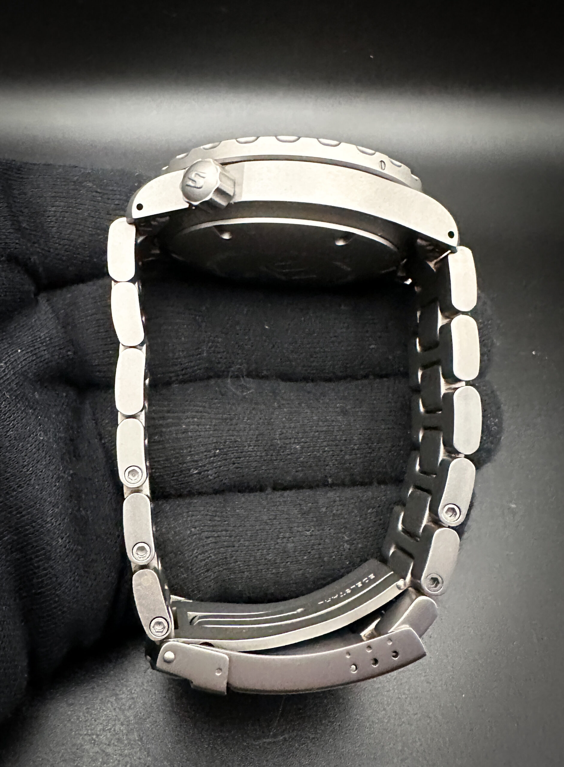* Bezel: A captive diver’s bezel with a black hard coating and TEGIMENT Technology for scratch resistance.