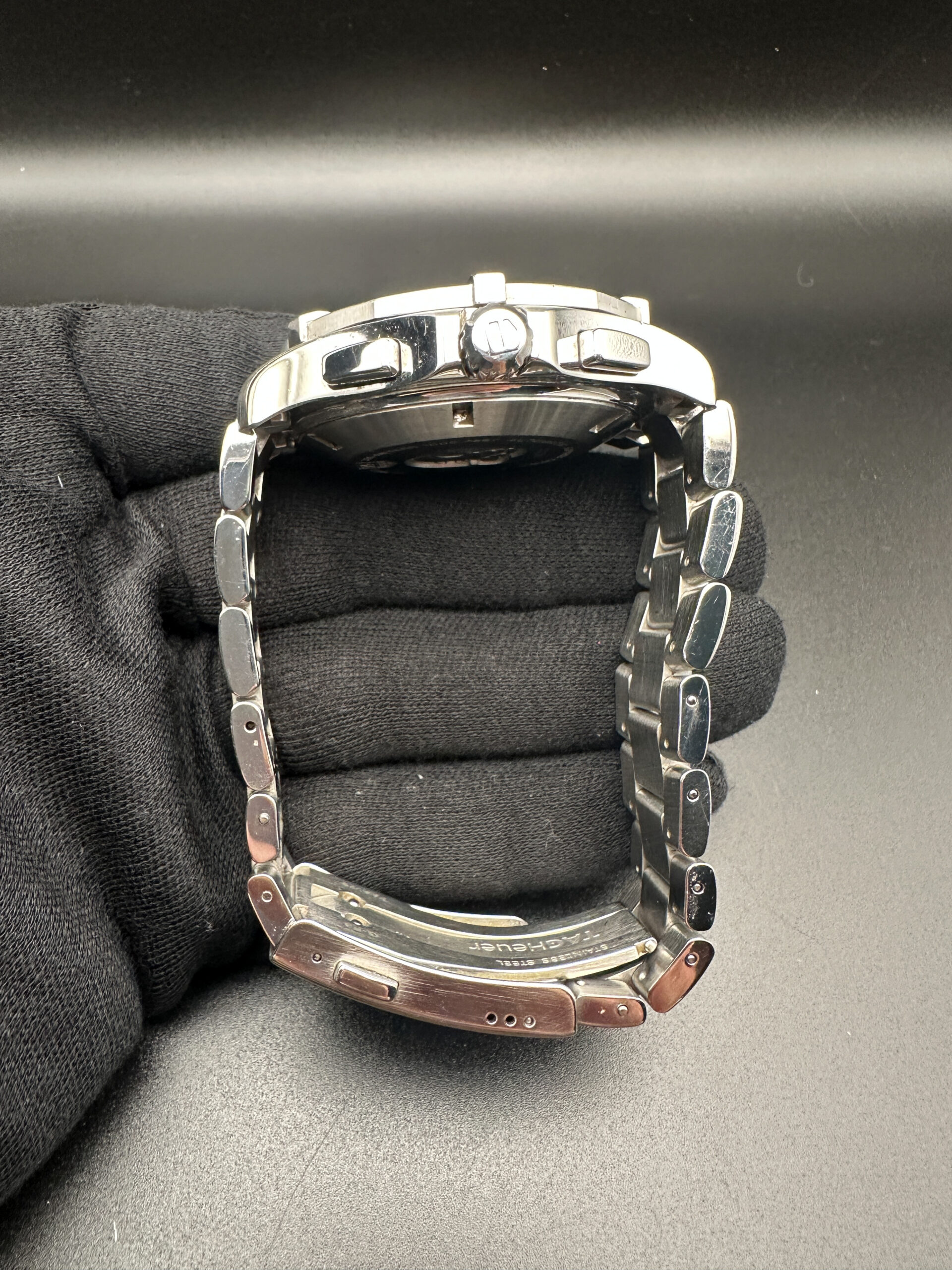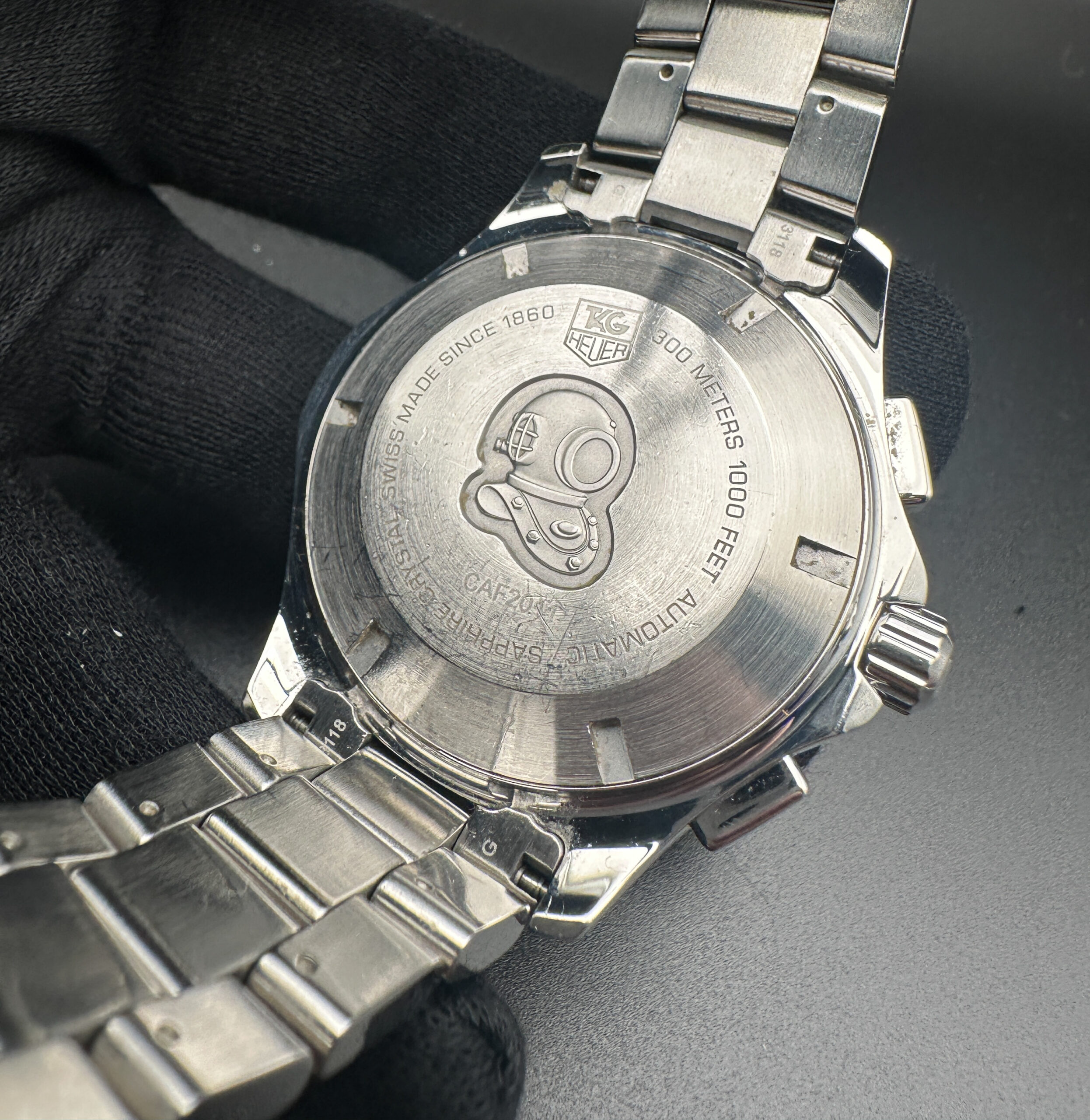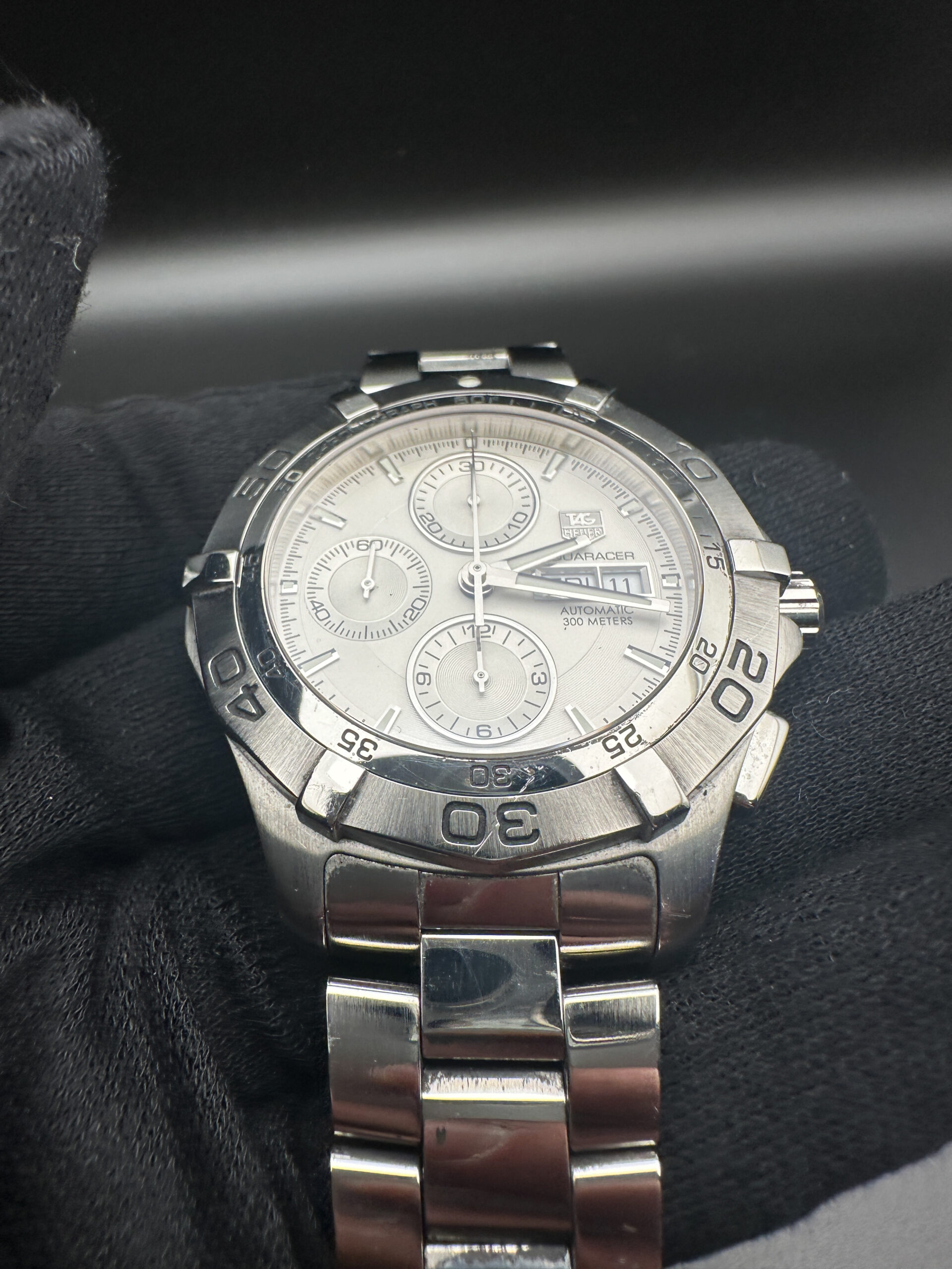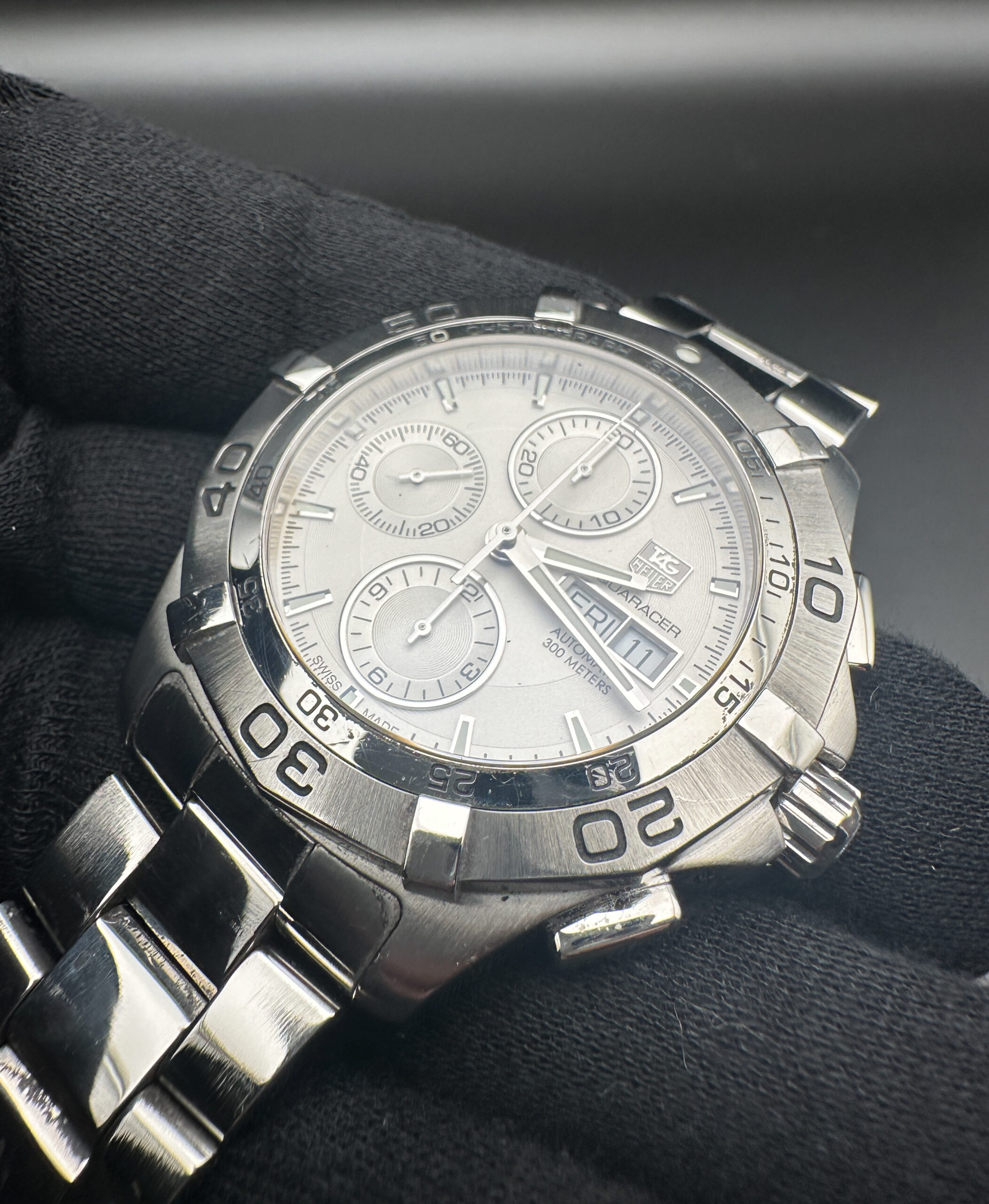 Tag Heuer Aquaracer Chronograph CAF2011 in a 43mm stainless steel case, powered by the Tag Heuer caliber 16 automatic movement. This Aquaracer has been tested in excellent working order and is ready for daily wear or to be added to a collection. Includes a new Wrist Wraith watch roll, and TLC Authentication/Warranty card.