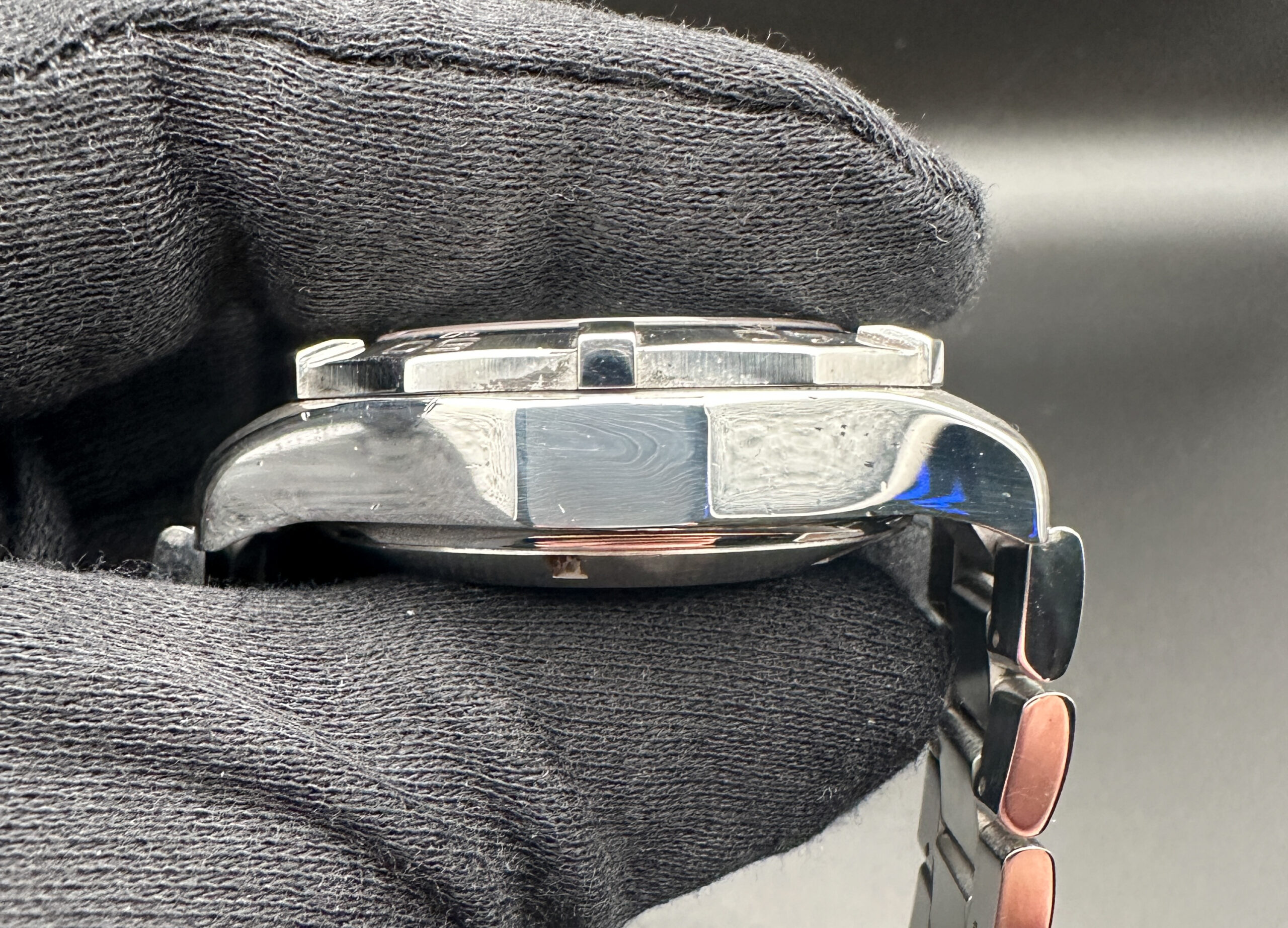 The crystal is clear and free of scratches or mars. The dial and hands are pristine with no discoloration or stains. The case shows light spider lines consistent with careful use, but no significant scratches, marks or dents.