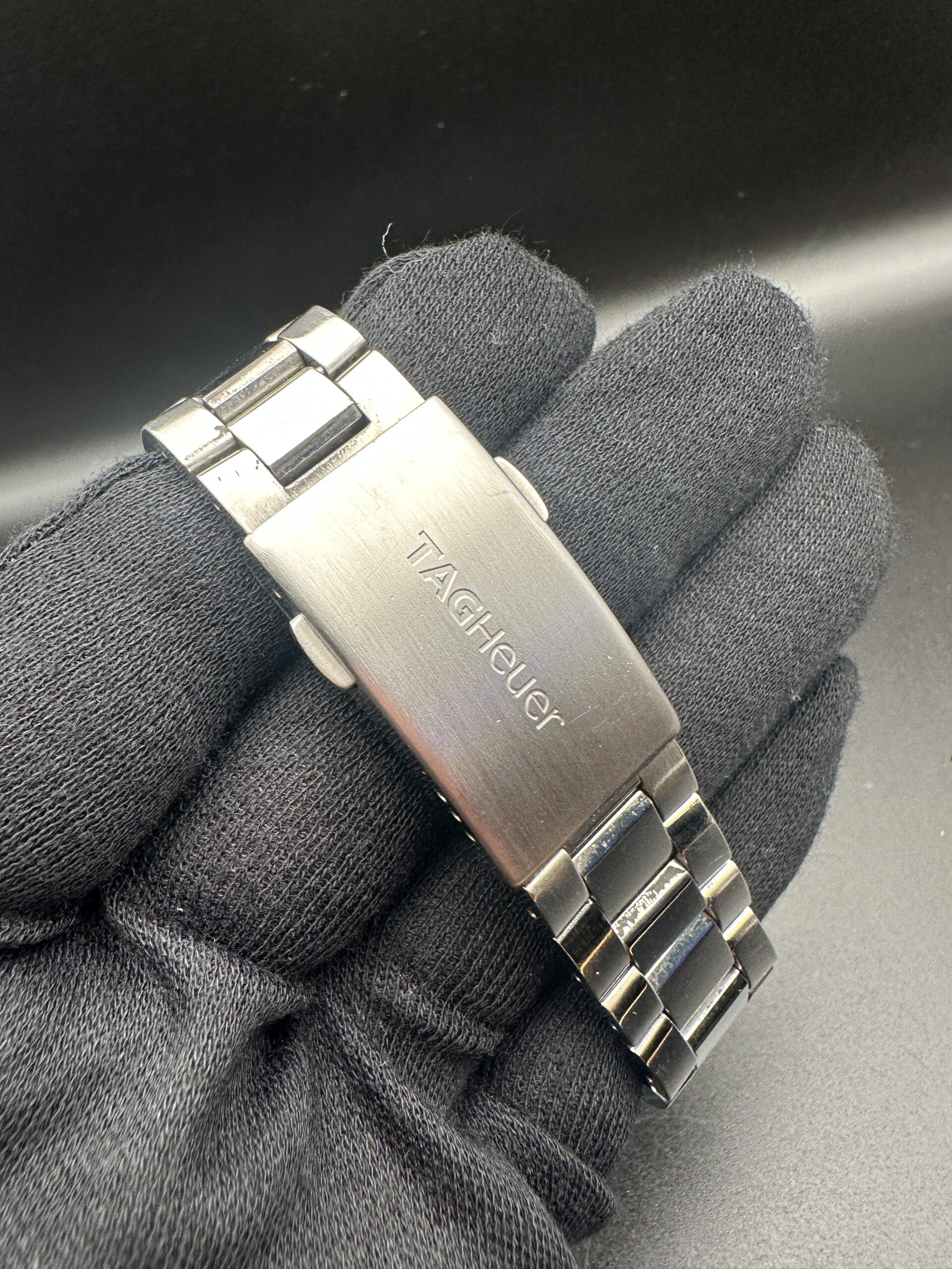 This Aquaracer is paired with the original Tag Heuer FAA029 stainless steel bracelet. The bracelet will currently fit an 8.5 inch wrist.