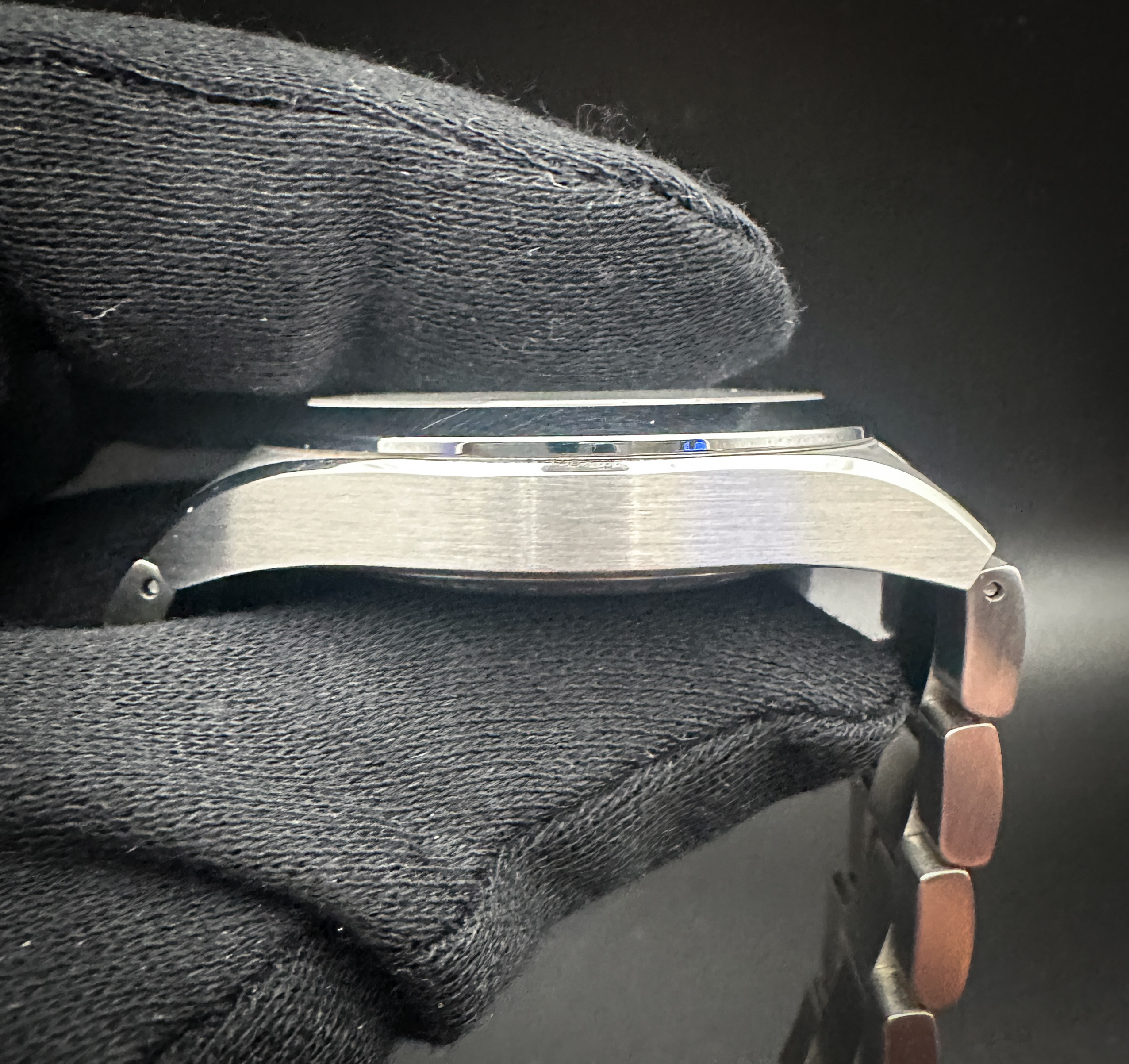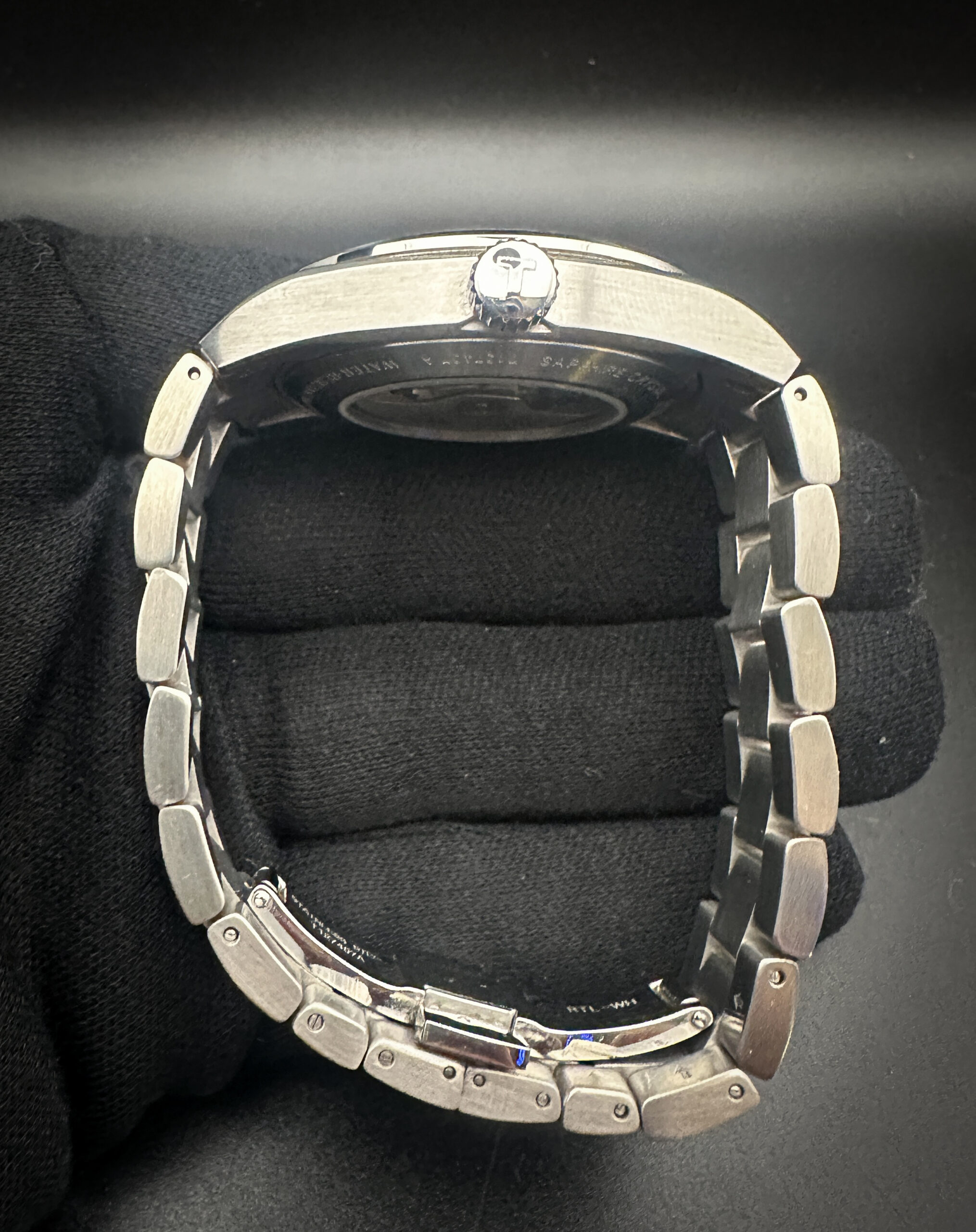 * Dial: Silver with luminous silver-tone hands and index hour markers, with a date display at the 3 o’clock position.