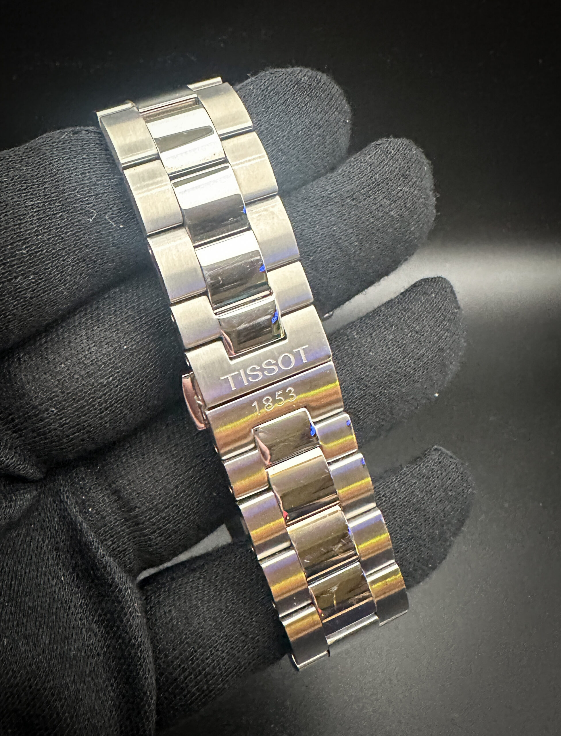 Tissot Powermatic 80 Silicium T127.407.11.031 in a 40mm stainless steel case, powered by the 80-hour Tissot automatic movement. This Tissot has been tested in excellent working order and is ready for daily wear. Includes: outer sleep, inner box; instruction booklet; hang-tags; extra links; and an extra red suede strap.